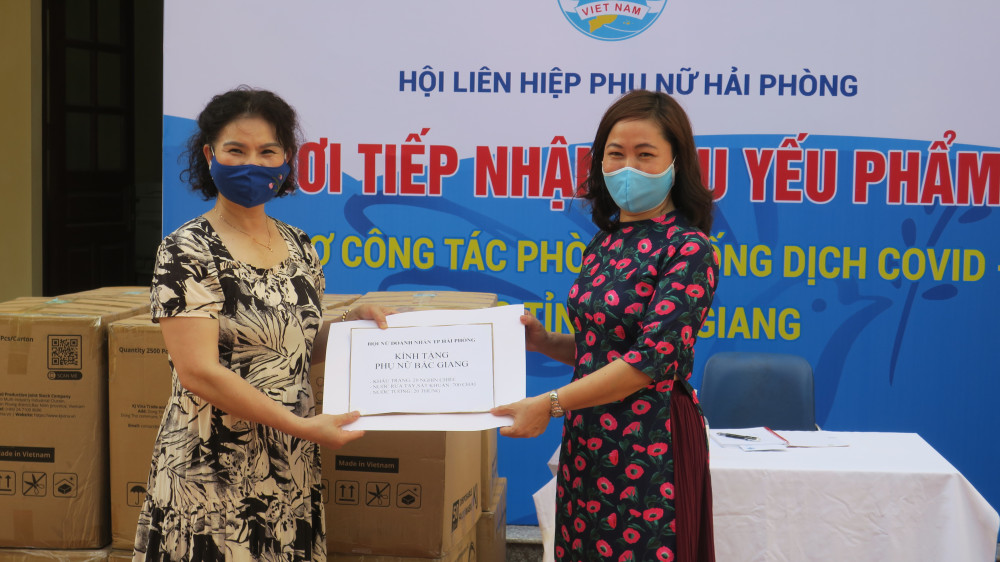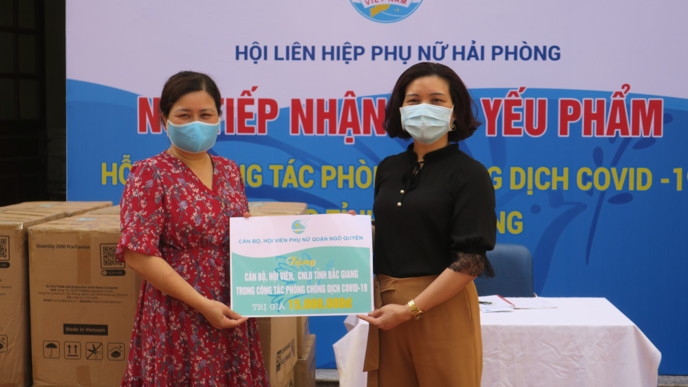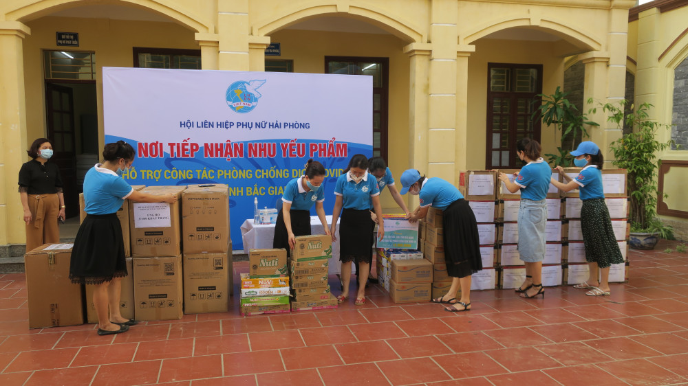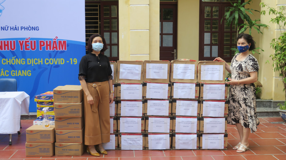Đặc biệt trước thực trạng dịch COVID-19 diễn biến phức tạp tại tỉnh Bắc Giang, số ca nhiễm liên tục tăng nhanh lên đến 1.500 ca trong vài ngày, đối tượng lây nhiễm hầu hết là công nhân, trong đó tỷ lệ công nhân nữ rất cao. Hội Liên hiệp Phụ nữ thành phố Hải Phòng đã phát động chị em phụ nữ và nhân dân ủng hộ nhân dân tỉnh Bắc Giang, cùng hướng về Bắc Giang, đồng hành cùng Bắc Giang phòng chống dịch. Chiều 26/5, Chủ tịch Hội Liên hiệp Phụ nữ Hải Phòng đã liên hệ với Chủ tịch Hội Liên hiệp Phụ nữ Bắc Giang, chị cho biết đối tượng công nhân nữ là F1 và F0 tăng lên rất nhanh, các chị em phải thực hiện cách ly y tế chặt chẽ, vì vậy các nhu yếu phẩm rất cần thiết. Chủ tịch Hội Liên hiệp Phụ nữ thành phố đã trực tiếp làm việc với các doanh nghiệp, các ngân hàng… cùng với các hội viên Hội Liên hiệp Phụ nữ thành phố đồng lòng ủng hộ một khối lượng lớn nhu yếu phẩm thiết yếu cho chị em phụ nữ đang thực hiện cách ly tại Bắc Giang. Ngay trong sáng ngày mai 28/5, chuyến xe đầy nghĩa tình sẽ đem hàng hóa đến với chị em công nhân Bắc Giang. Công tác vận chuyển hàng sẽ được thực hiện theo quy định phòng chống dịch, đảm bảo an toàn cho cả hàng hóa và người lái xe.