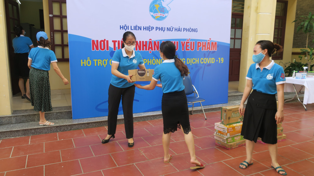 Hưởng ứng lời kêu gọi của Hội Liên hiệp Phụ nữ thành phố Hải Phòng, chiều 27/5, nhiều cơ quan, tổ chức, doanh nghiệp và các nhà hảo tâm tích cực ủng hộ các mặt hàng nhu yếu phẩm thiết yếu chi viện cho các khu cách ly tập trung tại tỉnh Bắc Giang.