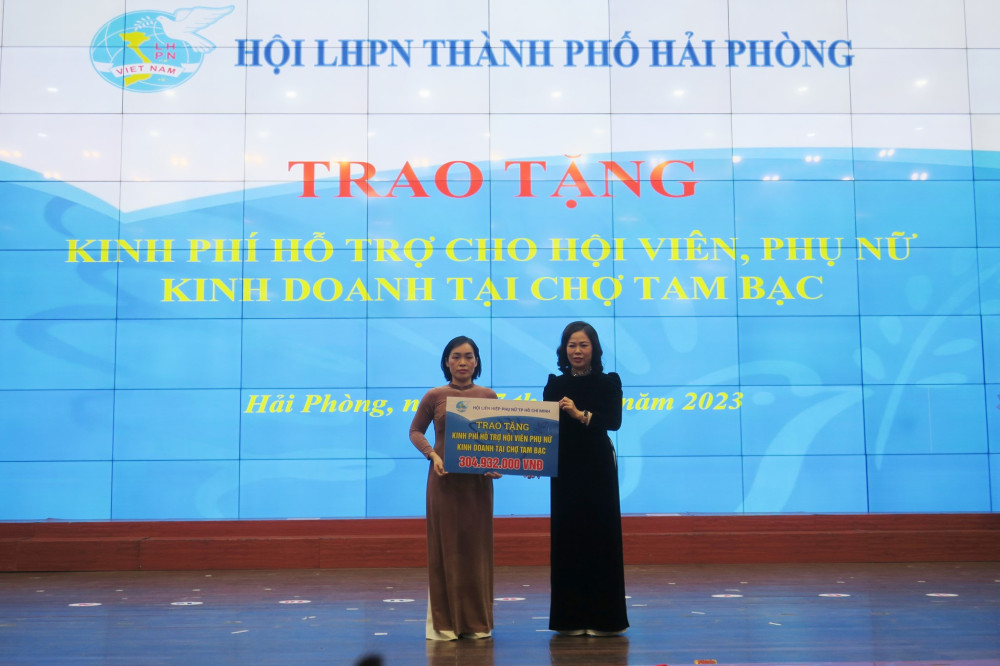 Nhân dịp này, Hội LHPN thành phố trao kinh phí 304.932.000 đồng hỗ trợ cho hội viên, phụ nữ bị ảnh hưởng bởi vụ cháy chợ Tam Bạc (quận Hồng Bàng); Quỹ Hỗ trợ phụ nữ phát triển phối hợp với Công ty Bảo Việt Hải Phòng trao tặng 1000 gói bảo hiểm “An sinh hạnh phúc” cho hội viên, phụ nữ có hoàn cảnh khó khăn trên địa bản thành phố, trị giá 146 triệu đồng…