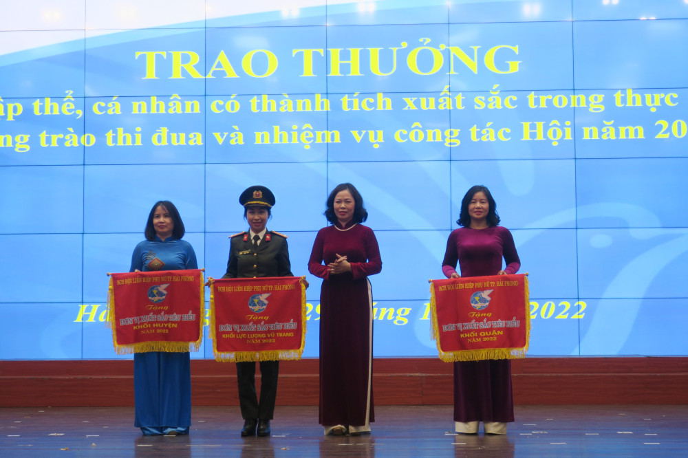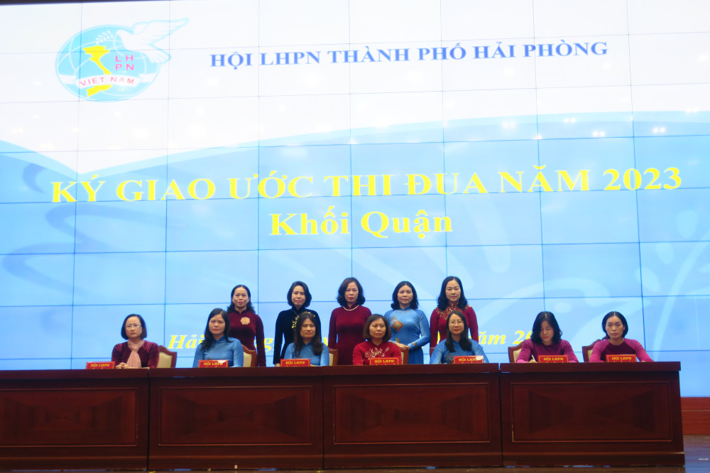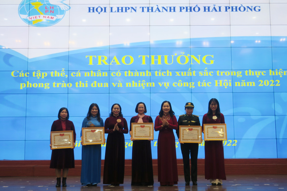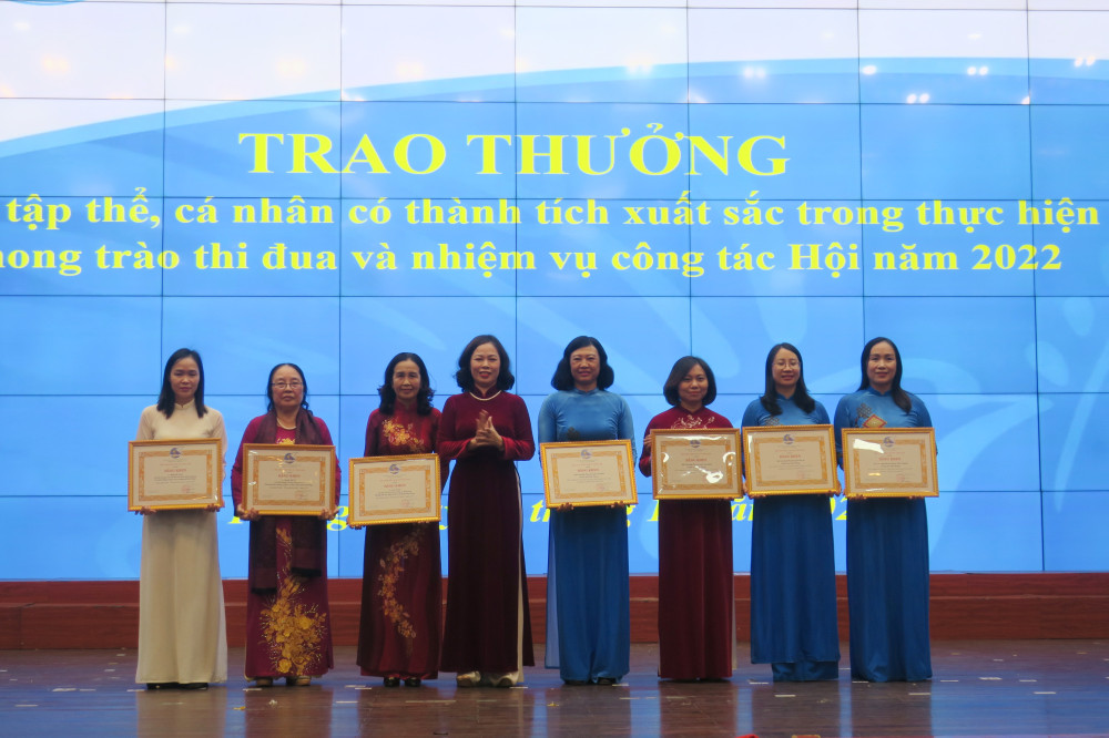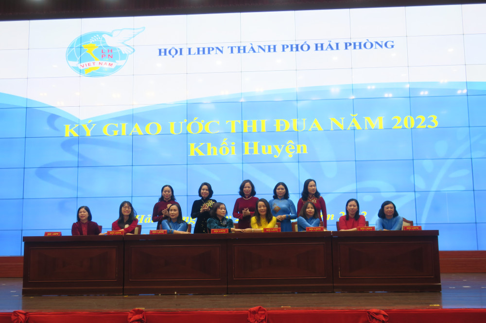 Tại Hội nghị, đại diện Hội LHPN các quận, huyện, đơn vị, tổ chức thành viên của Hội LHPN thành phố đã tiến hành ký kết giao ước thi đua năm 2023. Nhân dịp này, Trung ương Hội LHPN Việt Nam tặng Bằng khen cho 04 tập thể Hội LHPN cấp huyện, 27 tập thể Hội LHPN cấp cơ sở có thành tích xuất sắc trong thực hiện phong trào thi đua và nhiệm vụ công tác Hội năm 2022; 03 cá nhân đạt danh hiệu “Phụ nữ tiêu biểu” năm 2022. Hội LHPN thành phố trao Cờ thi đua xuất sắc tiêu biểu tặng 3 tập thể; trao Cờ thi đua xuất sắc tặng 6 tập thể; trao Bằng khen 49 tập thể, 34 cá nhân. Đặc biệt, nhân dịp Tết đến xuân về, Hội LHPN thành phố trao quà Tết tặng 461 Chi hội trưởng khó khăn, không kiêm nhiệm chức danh có thù lao, phụ cấp tại cộng đồng nhưng vẫn luôn tâm huyết, nhiệt tình với công tác Hội và phong trào phụ nữ những năm qua.