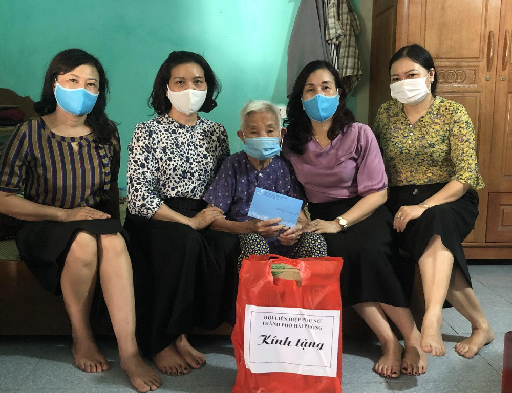 Nhân dịp kỷ niệm 74 năm Ngày Thương binh, Liệt sỹ (27/7/1947-27/7/2021) với truyền thống “Uống nước nhớ nguồn”, ngày 12/7, đồng chí Nguyễn Thị Thúy Hồng, Phó chủ tịch Thường trực Hội Liên hiệp Phụ nữ thành phố dẫn đầu đoàn công tác đến thăm và tặng 20 suất quà trị giá 20 triệu đồng cho các Mẹ Việt Nam Anh hùng, mẹ, vợ liệt sỹ có hoàn cảnh khó khăn trên địa bàn huyện Vĩnh Bảo.