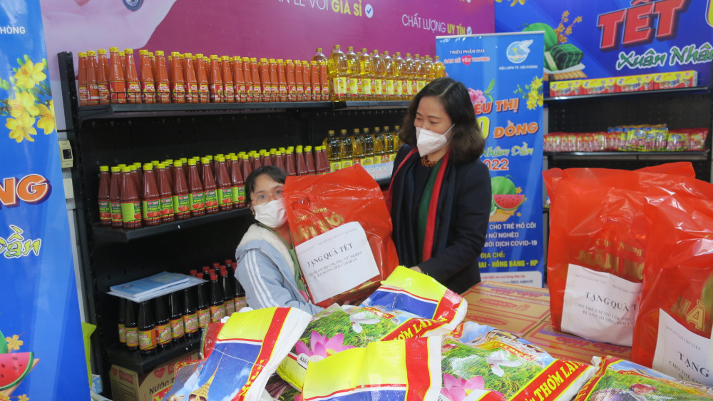 Đồng chí Vũ Thị Kim Liên, Chủ tịch Hội Liên hiệp Phụ nữ thành phố cho biết: Tết đến xuân về là dịp đoàn viên gia đình, với mục đích mang Tết đến cho trẻ mồ côi và phụ nữ nghèo là chủ hộ, lao động chính trong gia đình bị ảnh hưởng bởi dịch bệnh COVID-19, Hội Liên hiệp Phụ nữ thành phố Hải Phòng kêu gọi các nhà hảo tâm chung tay chăm lo mang tết đến cho những đối tượng này qua “Siêu thị 0 đồng”, chương trình diễn ra từ nay đến hết ngày 19/1.