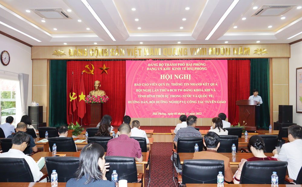 Sáng 5/11, Đảng ủy Khu kinh tế Hải Phòng tổ chức Hội nghị báo cáo viên quý IV/2022 thông tin nhanh kết quả hội nghị lần thứ 6 Ban Chấp hành Trung ương Đảng khóa XIII và tình hình thời sự trong nước và quốc tế; hướng dẫn, bồi dưỡng nghiệp vụ công tác Tuyên giáo.