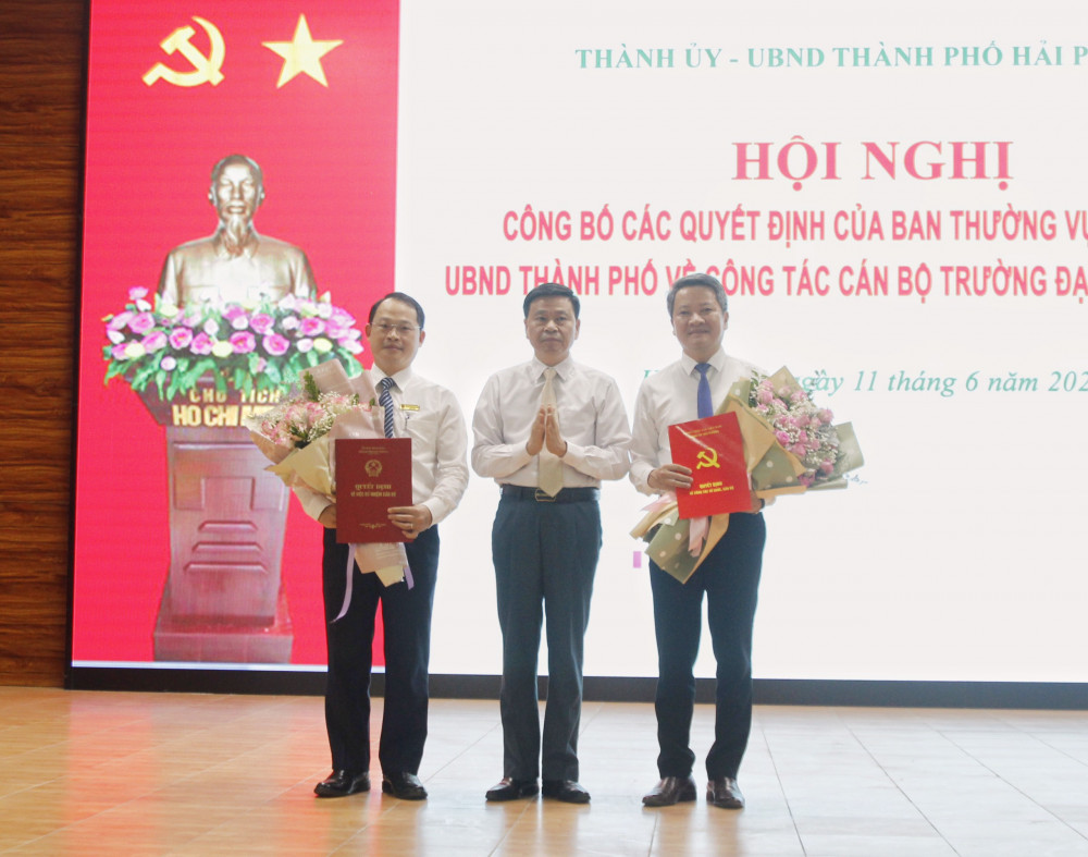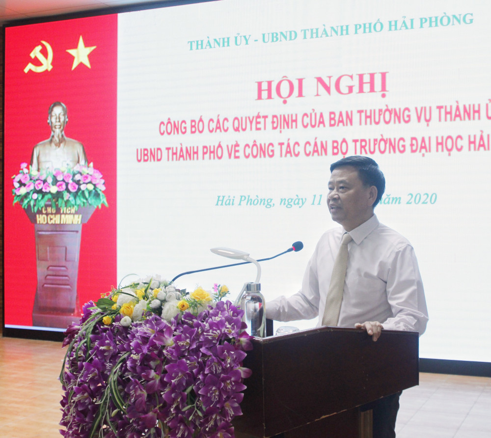 Chiều 11/6, Trưởng Ban Tổ chức Thành ủy Phạm Văn Hà chủ trì Hội nghị công bố quyết định của Ban Thường vụ Thành ủy, UBND thành phố về công tác cán bộ trường Đại học Hải Phòng.