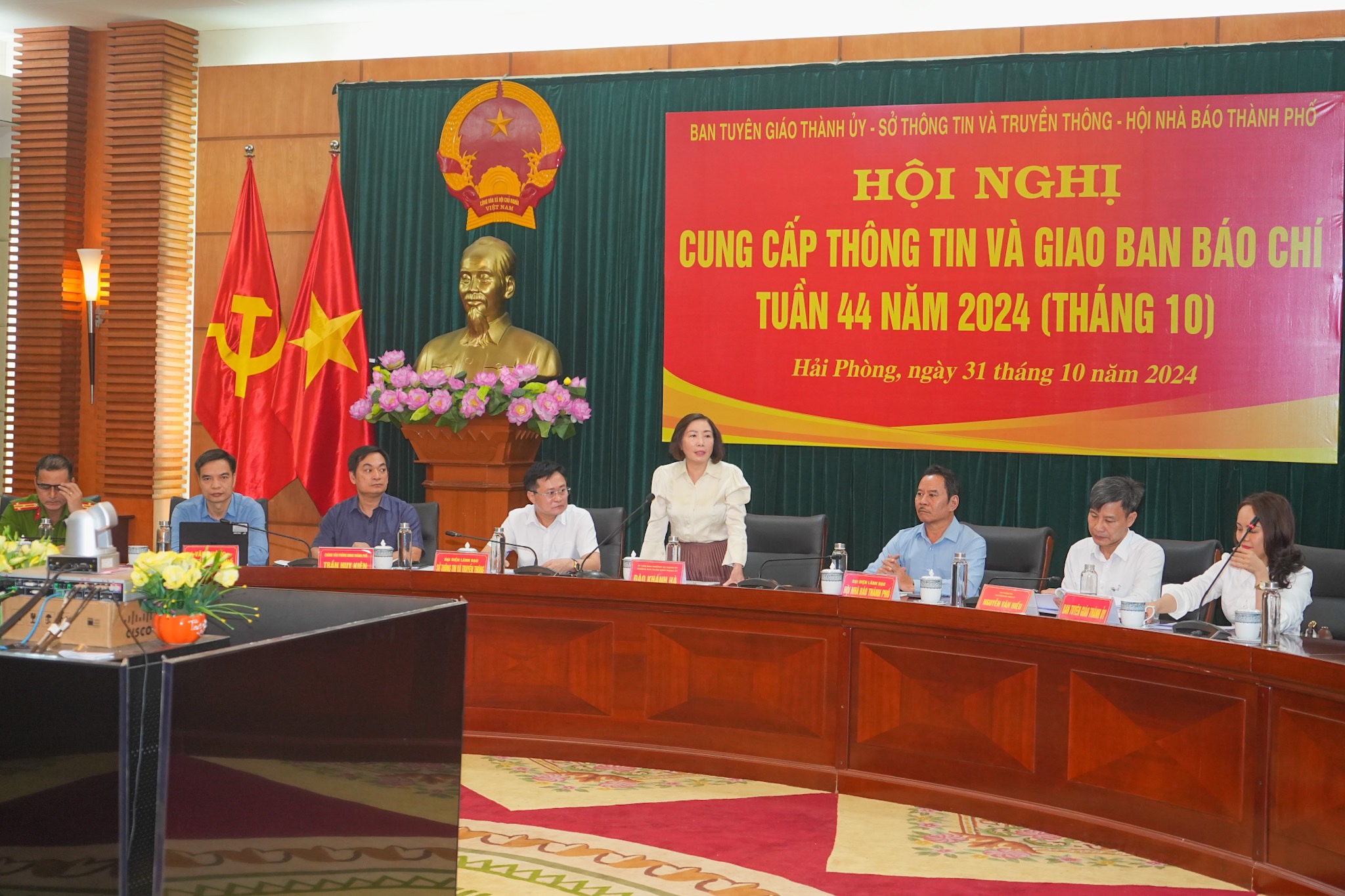 Phát biểu định hướng, đồng chí Đào Khánh Hà, Trưởng Ban Tuyên giáo Thành ủy đề nghị các cơ quan báo chí tiếp tục tuyên truyền kết quả thực hiện Nghị quyết Đại hội XVI Đảng bộ thành phố và Nghị quyết 45 của Bộ Chính trị; Quy định số 144 của Bộ Chính trị Quy định chuẩn mực đạo đức cách mạng của cán bộ, đảng viên giai đoạn mới. Tuyên truyền câc nội dung thảo luận tại Kỳ họp thứ 8, Quốc hội khóa 15. Kết quả phát triển kinh tế-xã hội 10 tháng và chủ đề năm của thành phố. Tăng cường tuyên truyền về các ngày lễ lớn trong tháng 11 tới./.