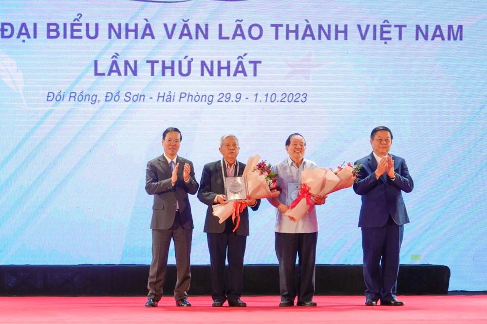 Nhân dịp này, Hội Nhà văn Việt Nam trao tặng Chủ tịch Nước Võ Văn Thưởng cuốn sách “Hồ Chí Minh Thư gửi nước Mỹ“, tập hợp những bức thư của Chủ tịch Hồ Chí Minh gửi các chính khách, tổ chức và cá nhân ở Mỹ trong giai đoạn từ năm 1919-1969. Chủ tịch nước Võ Văn Thưởng trao bằng tôn vinh cho Nhà thơ Nguyễn Khoa Điềm và Nhà thơ Hữu Thỉnh, gửi tặng khen thưởng tới Nhà văn Ma Văn Kháng (vì lý do sức khỏe không tham dự Hội nghị).