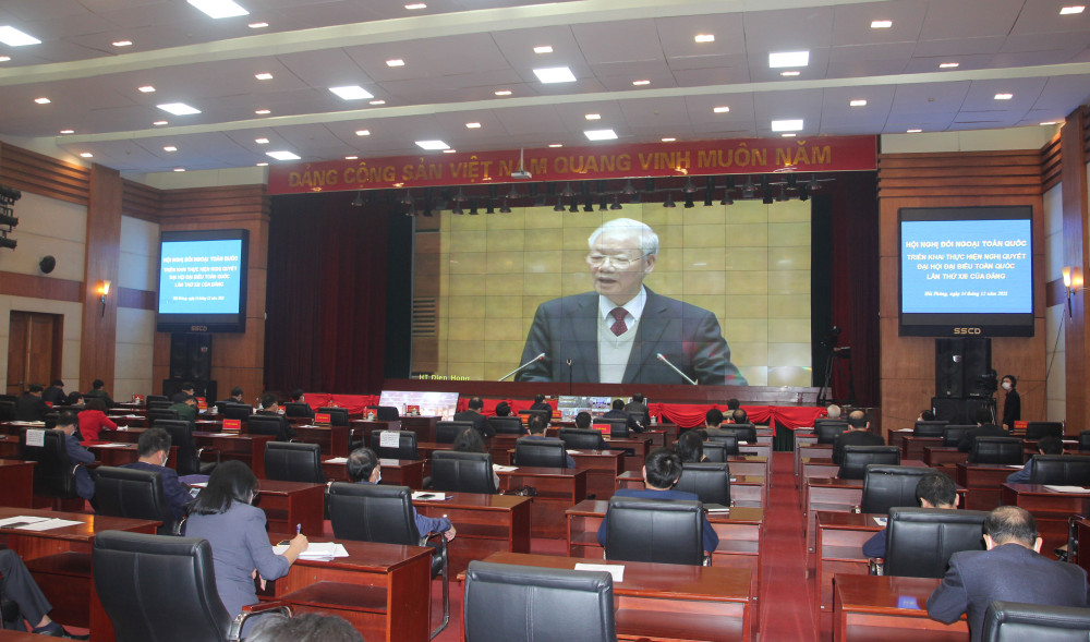 Sáng 14/12, Bộ Chính trị, Ban Bí thư tổ chức Hội nghị Đối ngoại toàn quốc triển khai thực hiện Nghị quyết Đại hội lần thứ XIII của Đảng theo hình thức trực tiếp kết hợp trực tuyến. Tổng Bí thư Nguyễn Phú Trọng chủ trì và phát biểu chỉ đạo Hội nghị. Tham dự Hội nghị có các đồng chí Ủy viên Bộ Chính trị: Chủ tịch nước Nguyễn Xuân Phúc, Thủ tướng Chính phủ Phạm Minh Chính, Thường trực Ban Bí thư Võ Văn Thưởng.