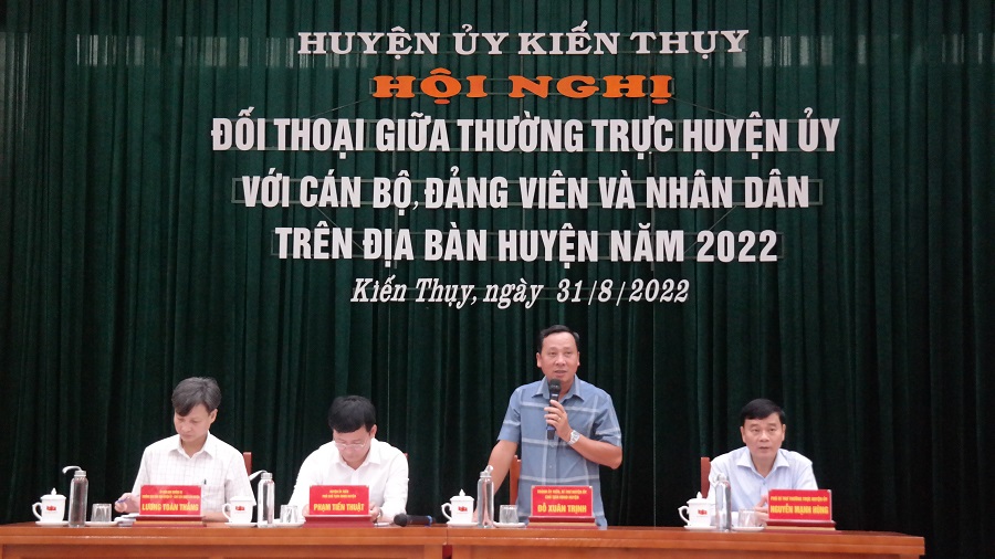 Sáng 31/8, Đồng chí Đỗ Xuân Trịnh, Bí thư Huyện ủy Kiến Thụy chủ trì hội nghị đối thoại giữa người đứng đầu cấp ủy, chính quyền với cán bộ, đảng viên và Nhân dân trên địa bàn huyện năm 2022.