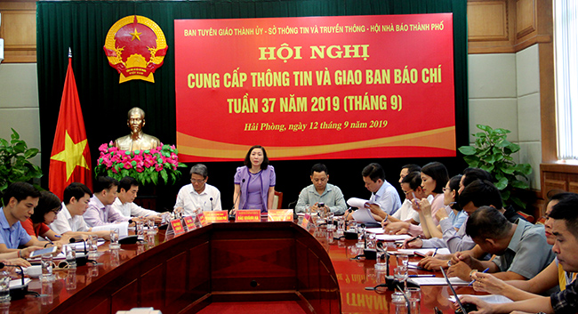 Định hướng tuyên truyền trong thời gian tới, đồng chí Đào Khánh Hà, Ủy viên Ban Thường vụ Thành ủy, Trưởng ban Ban Tuyên giáo Thành ủy đề nghị các cơ quan báo chí trên địa bàn tiếp tục quan tâm tuyên truyền tình hình kinh tế – xã hội 8 tháng và quý 3/2019, chủ đề năm của thành phố để phấn đấu hoàn thành các chỉ tiêu kinh tế – xã hội, quốc phòng – an ninh. Cùng với đó tuyên truyền Nghị quyết 45-NQ-TW cùa Bộ Chính trị về xây dựng và phát triển thành phố Hải Phòng đến năm 2030, tầm nhìn đến năm 2045; Chỉ thị số 35 của Bộ Chính trị và Thông tri số 36 của Ban Thường vụ Thành ủy về chuẩn bị tổ chức đại hội Đảng bộ các cấp, tiến tới đại hội Đảng bộ thành phố lần thứ XVI, Đại hội Đảng toàn quốc lần thứ XIII. Tuyên truyền gắn với thực hiện Nghị quyết số 50 của Bộ Chính trị về định hướng hoàn thiện thể chế, chính sách, nâng cao chất lượng, hiệu quả hợp tác đầu tư nước ngoài đến năm 2030. Tập trung tuyên truyền các hoạt động của thành phố; tuyên truyền, biểu dương các điển hình tiên tiến học tập và làm theo tư tưởng, đạo đức, phong cách Hồ Chí Minh; tuyên truyền về những giải pháp thực hiện nhằm hoàn thành mục tiêu xây dựng nông thôn mới trên địa bàn thàn phố trong năm 2019; tuyên truyền thiết thực và hiệu quả các ngày kỷ niệm trong tháng 10/2019.