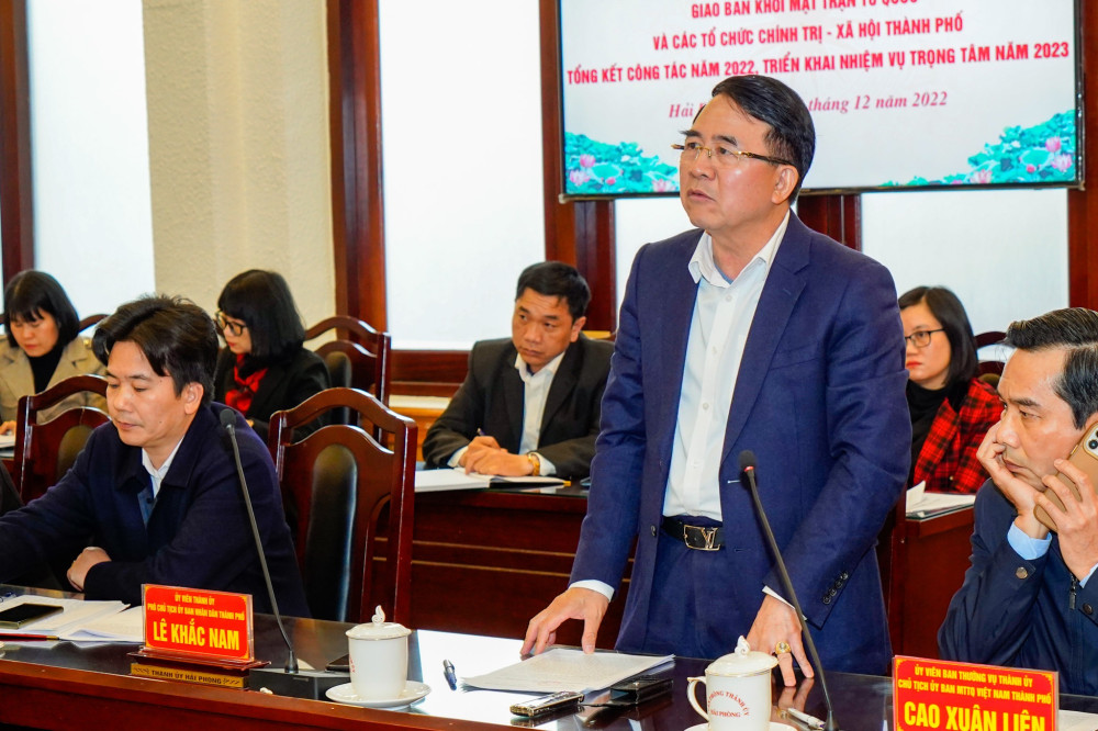 Theo báo cáo, năm 2022, MTTQ Việt Nam và các tổ chức chính trị-xã hội thành phố đã phát huy tinh thần đoàn kết, chủ động bám sát nhiệm vụ chính trị của thành phố; tập trung cao tuyên truyền, vận động Nhân dân thực hiện tốt chủ trương, đường lối của Đảng, chính sách pháp luật của Nhà nước, các văn bản chỉ đạo điều hành của thành phố về phát triển kinh tế-xã hội. Các phong trào thi đua yêu nước, các cuộc vận động được triển khai nghiêm túc với nhiều cách làm sáng tạo, linh hoạt. Công tác giám sát, phản biện xã hội, tham gia góp ý xây dựng Đảng, xây dựng chính quyền được tập trung triển khai đem lại hiệu quả thiết thực, thể hiện ngày càng rõ nét, đầy đủ vai trò, trách nhiệm của MTTQ Việt Nam và các tổ chức chính trị-xã hội thành phố trong tham gia xây dựng Đảng, xây dựng chính quyền vững mạnh. Việc kiện toàn tổ chức bộ máy, tích cực phát triển đoàn viên, hội viên và đảng viên mới; chăm lo, bảo vệ quyền và lợi ích hợp pháp, chính đáng của đoàn viên, hội viên và Nhân dân được chú trọng. Tổ chức thành công Đại hội đại biểu Hội Cựu chiến binh thành phố, nhiệm kỳ 2022-2027; Đại hội đại biểu Đoàn Thanh niên cộng sản Hồ Chí Minh thành phố lần thứ XIV, nhiệm kỳ 2022-2027 tạo sức lan toả, được xã hội ghi nhận đánh giá cao, góp phần thực hiện thắng lợi mục tiêu phát triển kinh tế-xã hội, đảm bảo an sinh xã hội của thành phố và các địa phương năm 2022. Công tác đối ngoại Nhân dân được tăng cường.