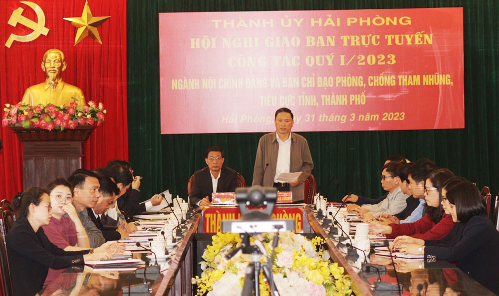 Dự tại điểm cầu thành phố Hải Phòng có các đồng chí: Đỗ Mạnh Hiến, Phó Bí thư Thường trực Thành ủy, Phó Trưởng Ban Chỉ đạo phòng, chống tham nhũng, tiêu cực thành phố; các đồng chí Ủy viên Ban Thường vụ Thành ủy: Đặng Bá Cường, Trưởng Ban Nội chính Thành ủy, Phó Trưởng ban Thường trực Ban Chỉ đạo phòng, chống tham nhũng, tiêu cực thành phố; Nguyễn Đình Chuyến, Chủ nhiệm Ủy ban Kiểm tra Thành ủy; Thiếu tướng Vũ Thanh Chương, Giám đốc Công an thành phố; cùng lãnh đạo, chuyên viên Ban Nội chính Thành ủy.