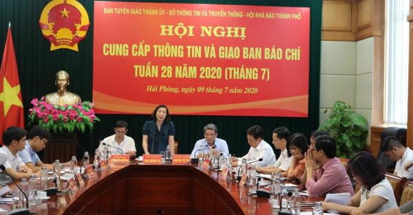 Chiều 09-7, Ban Tuyên giáo Thành ủy phối hợp với Sở Thông tin và Truyền thông và Hội Nhà báo thành phố Hải Phòng tổ chức Hội nghị giao ban và cung cấp thông tin báo chí tuần 28 tháng 7 năm 2020. Đồng chí Đào Khánh Hà – Ủy viên Ban thường vụ – Trưởng ban Tuyên giáo Thành ủy chủ trì hội nghị.