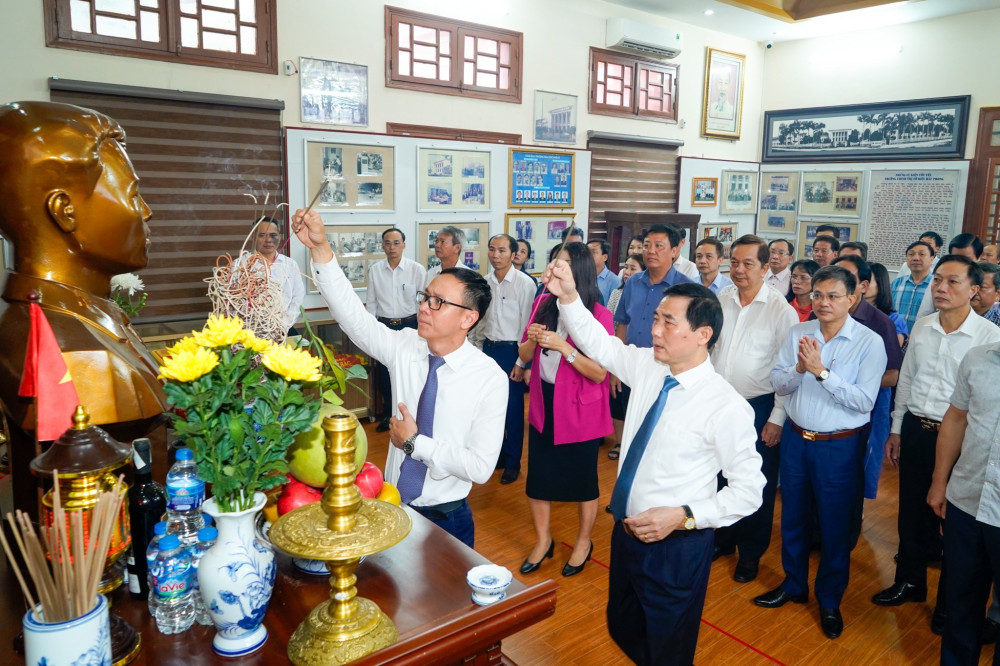 Trước đó, Đoàn đã đi thăm Khu công nghiệp sinh thái Nam Cầu Kiền; Khu bảo tồn bãi cọc Cao Quỳ, tại huyện Thủy Nguyên và dâng hương tưởng niệm đồng chí Tô Hiệu trong khuôn viên Trường Chính trị Tô Hiệu.