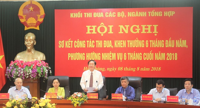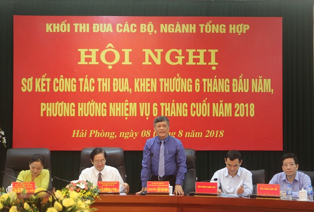 Sáng 8/8, tại Trung tâm Hội nghị thành phố Hải Phòng, Khối các Bộ, ngành tổng hợp tổ chức Hội nghị Sơ kết công tác thi đua, khen thưởng 6 tháng đầu năm và bàn phương hướng, nhiệm vụ 6 tháng cuối năm 2018. Các đồng chí: Lê Vĩnh Tân, Ủy viên Trung ương Đảng, Bộ trưởng Bộ Nội vụ; Trần Thị Hà, Thứ trưởng Bộ Nội vụ; Nguyễn Xuân Bình, Phó Chủ tịch Thường trực UBND thành phố Hải Phòng đồng chủ trì Hội nghị.