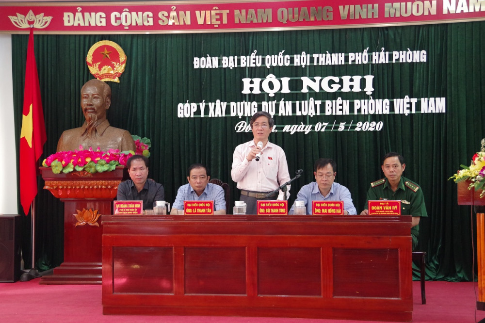 Chuẩn bị kỳ họp thứ 9 Quốc hội khóa XIV, chiều 7/5, Đoàn đại biểu Quốc hội thành phố Hải Phòng phối hợp với Bộ chỉ huy Bộ đội Biên phòng thành phố và UBND quận Đồ Sơn tổ chức hội nghị tiếp xúc cử tri chuyên đề góp ý xây dựng dự án Luật Biên phòng Việt Nam.