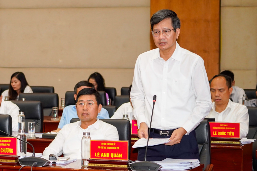 Đồng chí Bí thư Thành ủy cũng đề nghị cần quan tâm hơn nữa, chủ động hơn nữa trong xây dựng Đề án đào tạo nghề trên địa bàn thành phố đáp ứng yêu cầu công nghiệp hóa, hiện đại hóa thành phố; rà soát tổng thể hoạt động của các nhà máy nước mini, đề xuất giải pháp giải quyết dứt điểm tình trạng cấp nước không bảo đảm vệ sinh; giành ưu tiên các nguồn vượt thu, thưởng vượt thu cho nhiệm vụ đầu tư, nâng cấp đi vào hoạt động ít nhất 01 bệnh viện tuyến huyện hoặc bệnh viện khu vực; tăng cường chỉ đạo bám sát các cơ quan Trung ương liên quan, đẩy nhanh tiến độ thực hiện công tác chuyển giao một số cơ sở nhà, đất của các Bộ, ngành Trung ương về thành phố để thu hút đầu tư, phát triển du lịch tại quận Đồ Sơn; có phương án tổng thể bảo tồn và phát huy giá trị di sản thiên nhiên thế giới Vịnh Hạ Long-Quần đảo Cát Bà, vừa bảo đảm phát huy hết tiềm năng du lịch, vừa bảo đảm bảo vệ di sản thiên nhiên Cát Bà; tiếp tục thực hiện nhiệm vụ cải cách thủ tục hành chính trong Đảng…