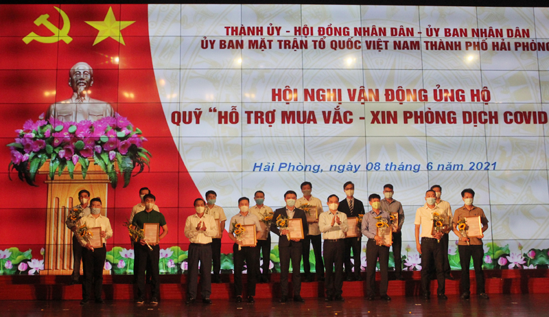 Tại hội nghị, đồng chí Cao Xuân Liên, Chủ tịch Ủy ban MTTQ Việt Nam thành phố đã phát động ủng hộ Quỹ “Hỗ trợ mua vắc-xin phòng dịch COVID-19“. Đồng chí nêu rõ, thời gian qua, đại dịch COVID-19 đã nhiều lần tấn công, song với tinh thần chủ động, quyết liệt, thần tốc, thành phố Hải Phòng đã kiểm soát tốt nguồn lây nhiễm từ bên ngoài, dập dịch triệt để từ bên trong, theo phương châm “Phát hiện sớm, truy vết nhanh, khoanh vùng kịp thời, xét nghiệm rộng”; huy động tối đa các nguồn lực phục vụ phòng, chống dịch, trong đó đã bố trí hơn 1.000 tỷ đồng từ ngân sách, cùng sự ủng hộ trên 50 tỷ đồng và nhiều vật tư y tế cùng các nhu yếu phẩm khác của toàn xã hội.