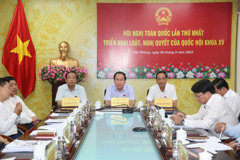 Phát biểu tại Hội nghị, Phó Bí thư Thành ủy, Chủ tịch UBND thành phố Hải Phòng Nguyễn Văn Tùng bày tỏ thống nhất cao với các báo cáo tại Hội nghị. Đồng thời, đề xuất về việc tiếp thu ý kiến của các địa phương vào các dự thảo Luật. Đối với thành phố Hải Phòng và các địa phương, sau khi nhận được dự thảo góp ý, thành phố rất quan tâm đến góp ý dự thảo Luật, Nghị quyết, do vậy mong muốn tới đây cơ quan soạn thảo tiếp thu, lắng nghe ý kiến từ địa phương để sát với thực tế cuộc sống. Hiện nay Quốc hội, Chính phủ rất quan tâm nhưng còn một số nội dung phân cấp chưa đồng bộ, dẫn tới trình tự thủ tục chưa được rút ngắn. Chủ tịch UBND thành phố Hải Phòng cũng đề nghị Quốc hội nghiên cứu một số cơ chế đặc thù mới để địa phương phát triển đột phá. Đối với thuế tối thiểu toàn cầu sẽ ảnh hưởng đến việc thu hút đầu tư với các tập đoàn lớn, các địa phương đề nghị Quốc hội sớm ban hành Nghị quyết về nội dung này, kịp thời tháo gỡ khó khăn trong thời gian tới. Sau hội nghị này, các địa phương sẽ tiếp tục triển khai các Hội nghị tương tự để các Luật, Nghị quyết của Quốc hội sớm đi vào cuộc sống.