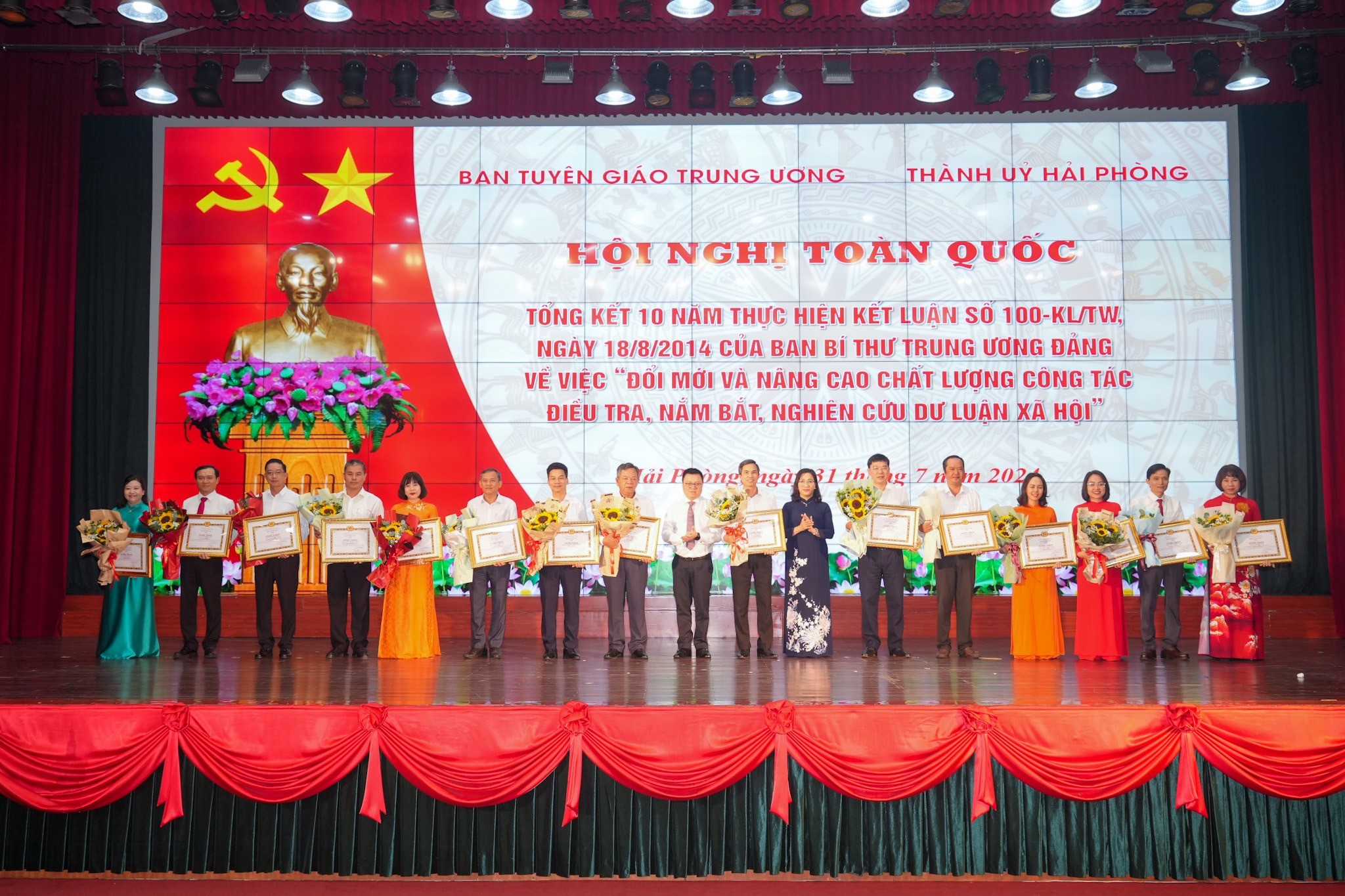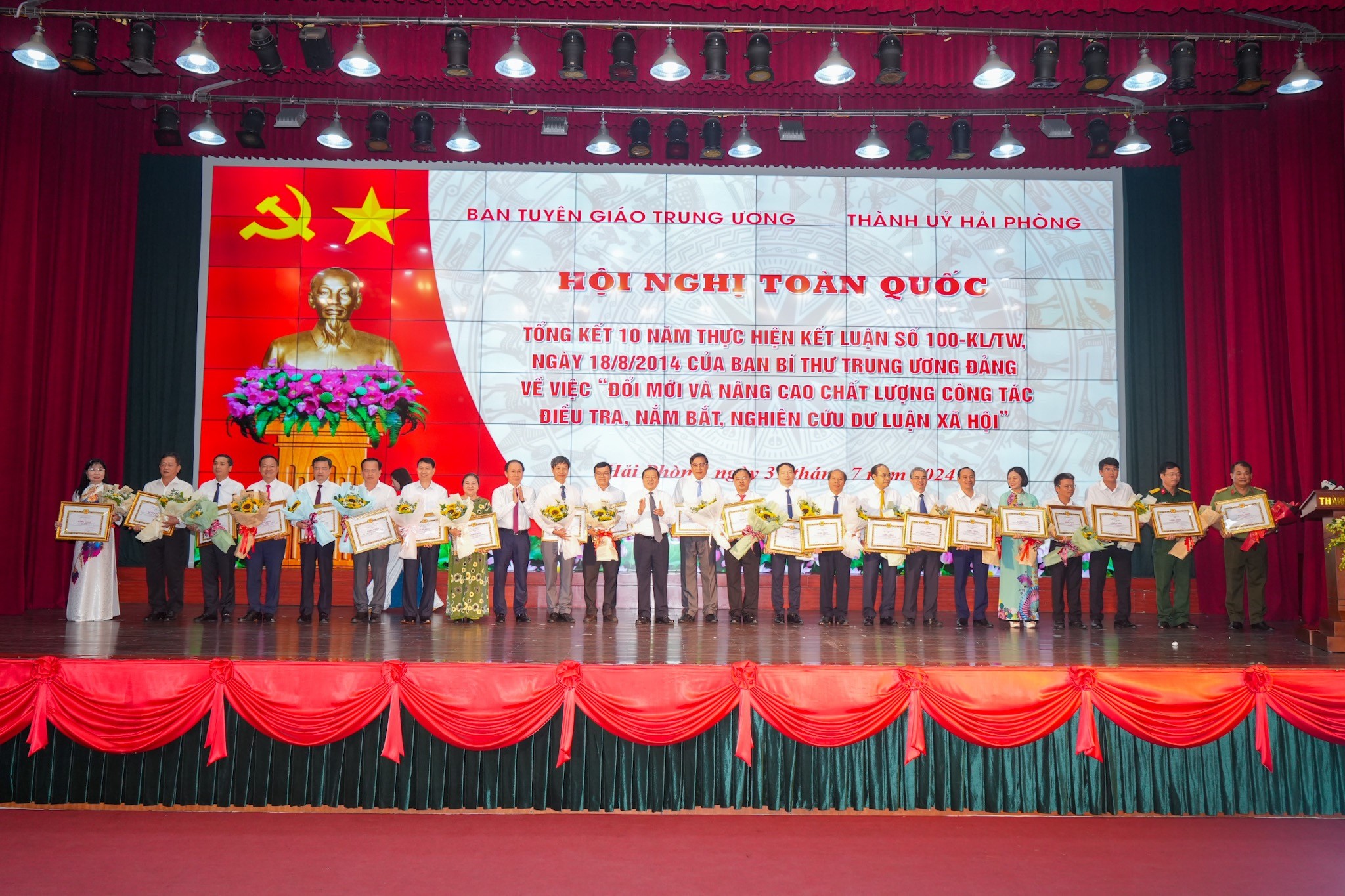 Tại Hội nghị, Viện Dư luận xã hội, Ban Tuyên giáo Trung ương đã được vinh dự nhận Bằng khen của Thủ tướng Chính phủ. Ban Tuyên giáo Trung ương đã trao Bằng khen cho 22 tập thể, 19 cá nhân đã có thành tích xuất sắc trong triển khai, thực hiện nhiệm vụ điều tra, nắm bắt, nghiên cứu dư luận xã hội.