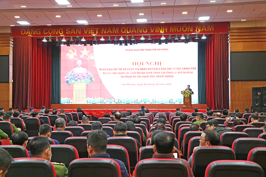 Sáng 20/12, tại Trung tâm Hội nghị thành phố, Phó Chủ tịch UBND thành phố Lê Khắc Nam chủ trì hội nghị triển khai Chỉ thị số 23/CT-TTg ngày 09/7/2023 của Thủ tướng Chính phủ về đẩy mạnh cải cách thủ tục hành chính cấp Phiếu lý lịch tư pháp tạo thuận lợi cho người dân, doanh nghiệp. Tham dự có đại diện lãnh đạo Sở, ngành, quận, huyện và các đơn vị liên quan.