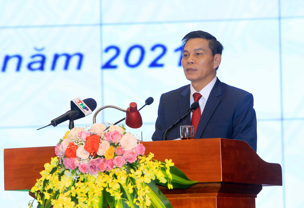 Tại Hội nghị, Phó Chủ tịch Thường trực UBND thành phố Lê Anh Quân công bố các quyết định của UBND thành phố về: Giao chỉ tiêu Kế hoạch phát triển kinh tế-xã hội năm 2021; Giao dự toán thu chi ngân sách nhà nước năm 2021; Chỉ thị về công tác chỉ đạo điều hành của UBND thành phố năm 2021.