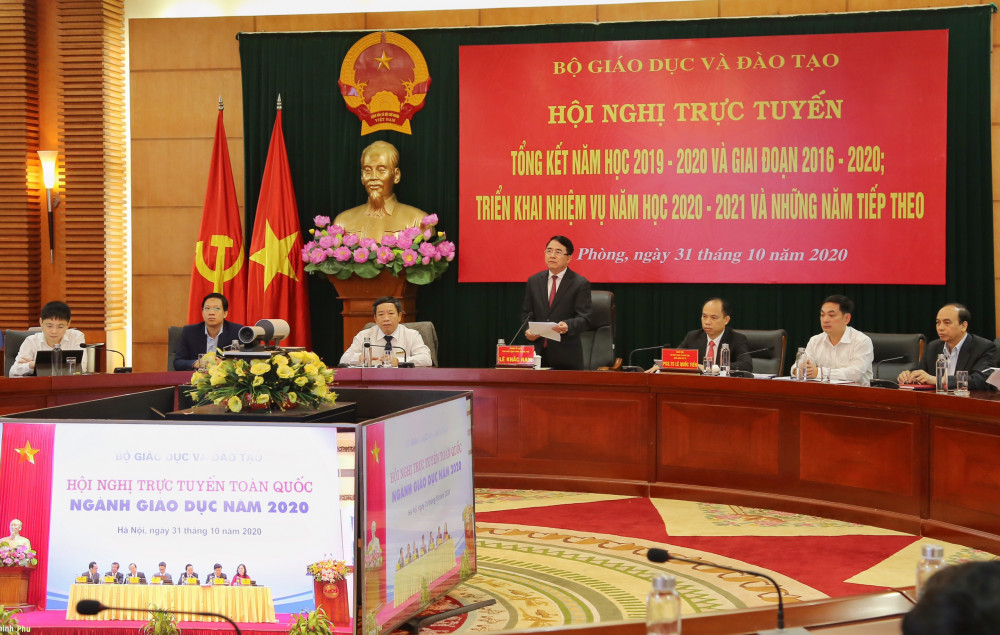 Sáng 31/10, tại Hà Nội, Bộ GD&ĐT tổ chức Hội nghị trực tuyến toàn quốc tổng kết năm học 2019-2020 và giai đoạn 2016-2020, triển khai nhiệm vụ năm học 2020-2021 và những năm tiếp theo. Dự hội nghị có Phó Thủ tướng Vũ Đức Đam cùng đại diện lãnh đạo các Bộ ngành, cơ quan Trung ương. Dự tại điểm cầu thành phố Hải Phòng có Phó Chủ tịch UBND thành phố Lê Khắc Nam và đại diện lãnh đạo các Sở, ngành liên quan.