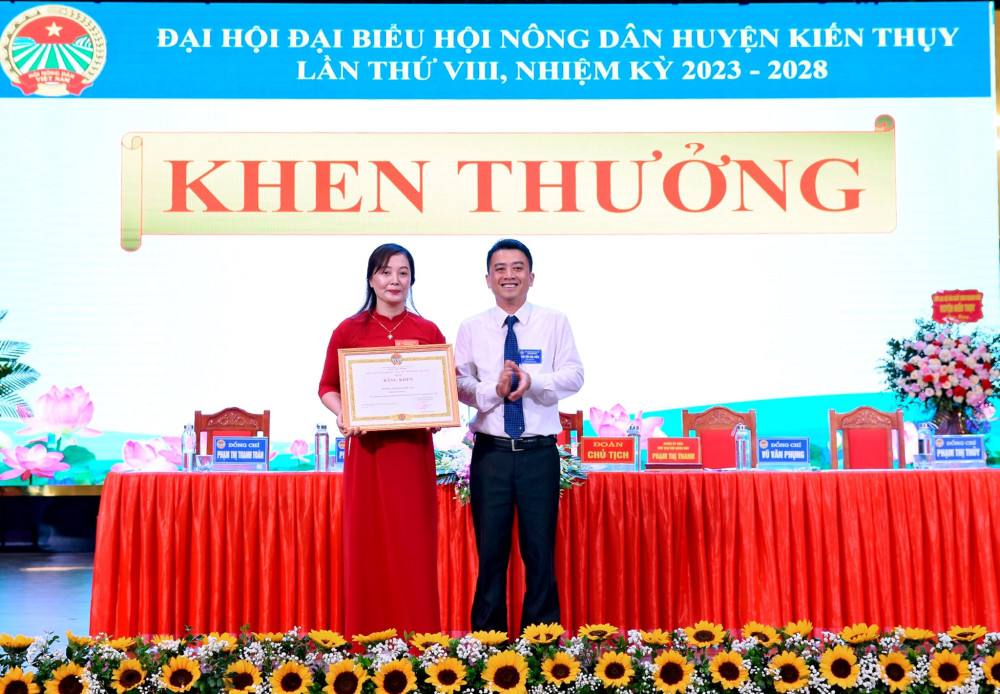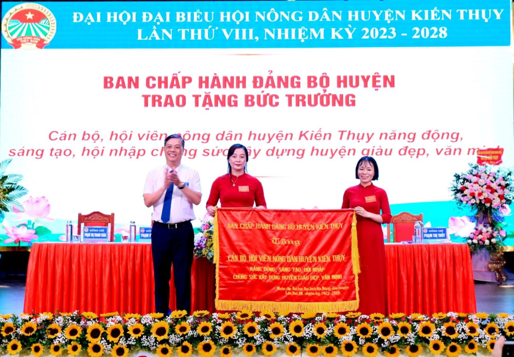Phát biểu tại Đại hội, đồng chí Trần Quang Tường, Chủ tịch Hội Nông dân thành phố và đồng chí Đỗ Đức Hòa, Bí thư Huyện ủy ghi nhận, đánh giá cao những kết quả mà Hội Nông dân huyện đã đạt được trong nhiệm kỳ qua. Đồng thời, đề nghị trong nhiệm kỳ mới, các cấp Hội Nông dân huyện nhà tiếp tục khơi dậy tính sáng tạo, phát huy lợi thế tiềm năng, lợi thế của địa phương, cùng với các cấp, các ngành, các tổ chức chính trị xã hội và Nhân dân trong huyện chung sức, đồng lòng thực hiện thắng lợi các nhiệm vụ chính trị, phát triển kinh tế-xã hội, giữ vững an ninh chính trị-trật tự an toàn xã hội, xây dựng huyện Kiến Thụy phát triển vững mạnh.