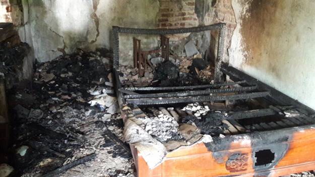 Nhưng do thời tiết nắng nóng gay gắt, tất cả vật dụng trong ngôi nhà, gồm: giường, tủ, ti vi, quạt… phút chốc bị thiêu rụi hoàn toàn, không có khả năng sửa chữa, phục hồi, sử dụng lại.