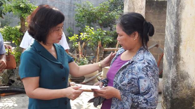 Phó Chủ tịch Thường trực Hội Nông dân thành phố Nguyễn Thị Thoa thăm hỏi, động viên và trao một phần kinh phí hỗ trợ gia đình bà Lan