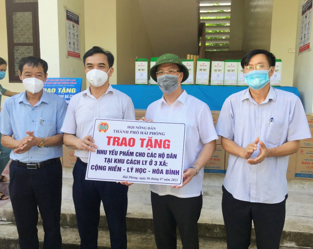 Sáng 6/7, Hội Nông dân thành phố tổ chức đi thăm và tặng quà động viên cho các hộ hội viên, nông dân trong vùng cách ly phòng, chống dịch thuộc các xã: Lý Học, Hòa Bình và Cộng Hiền (huyện Vĩnh Bảo). Cùng tham gia đồng hành có Công ty Cổ phần nước mắm Quang Hải và Cơ sở Spa Lâm Anh.