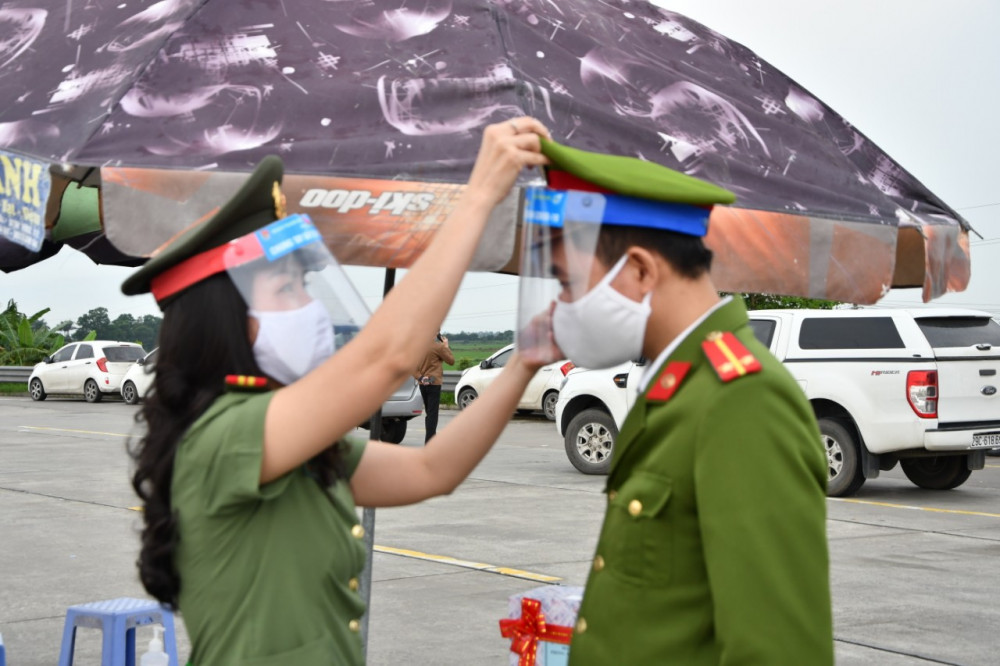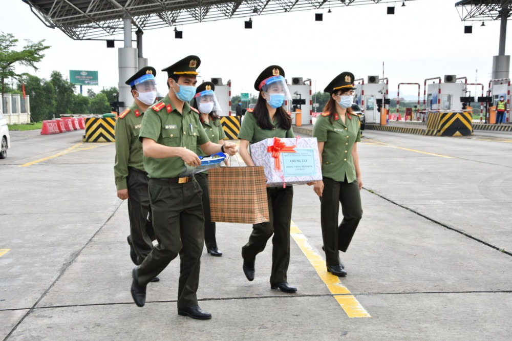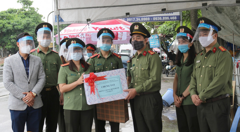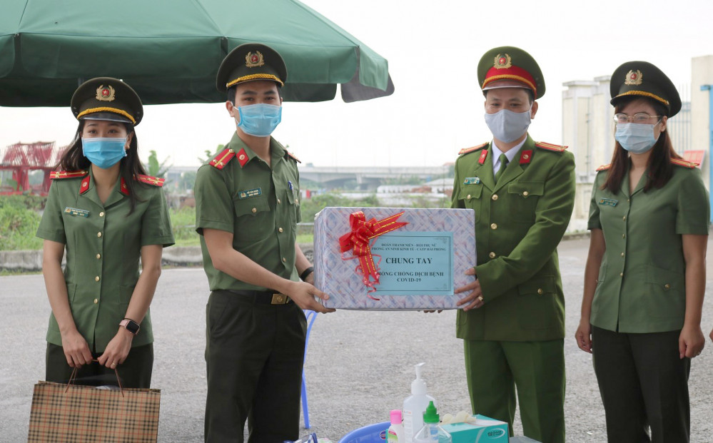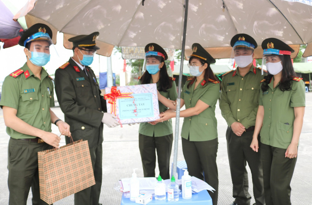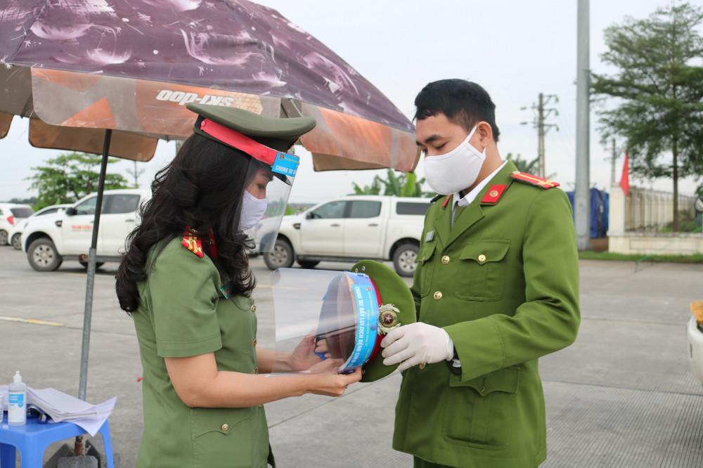 Sáng 6-4, 700 tấm chắn giọt bắn đã được Trung tá Vũ Thị Hồng Hạnh – Chủ tịch Hội phụ nữ và Đại úy Đỗ Văn Quân – Bí thư đoàn thanh niên Phòng An ninh kinh tế dẫn đầu đoàn công tác đến trao tặng cán bộ, chiến sỹ – những người lính trên tuyến đầu mặt trận phòng chống dịch của thành phố đang làm nhiệm vụ tại các chốt kiểm dịch số 3 (cao tốc đường 353), chốt số 2 (trạm thu phí đường 10 cao tốc Hà Nội – Hải Phòng) và chốt kiểm dịch Quốc lộ 5.