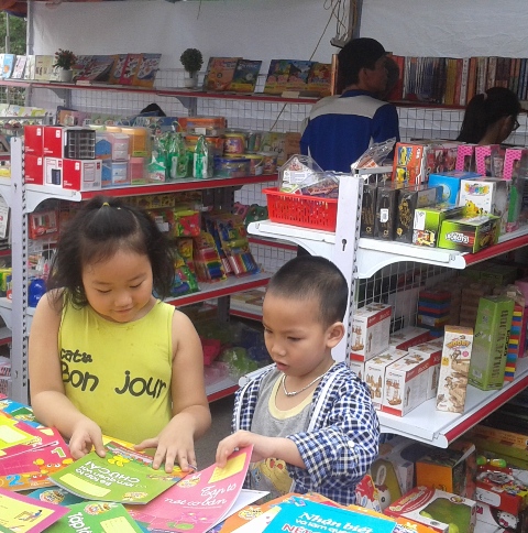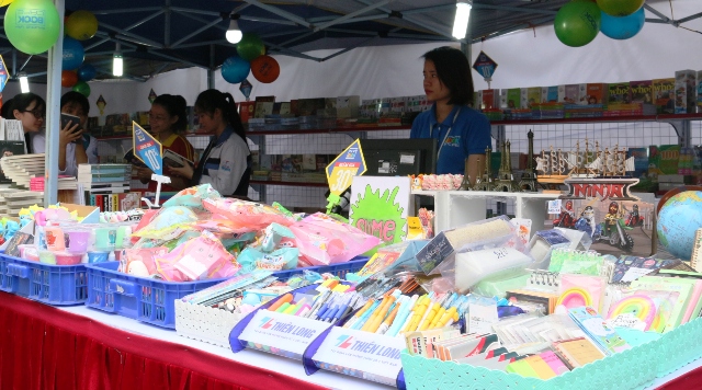 Một số nhà sách đem đến những thiết bị học tập như bút, sách, vở, bản đồ, đồ chơi thông minh cho trẻ em… góp phần làm phong phú hội sách.