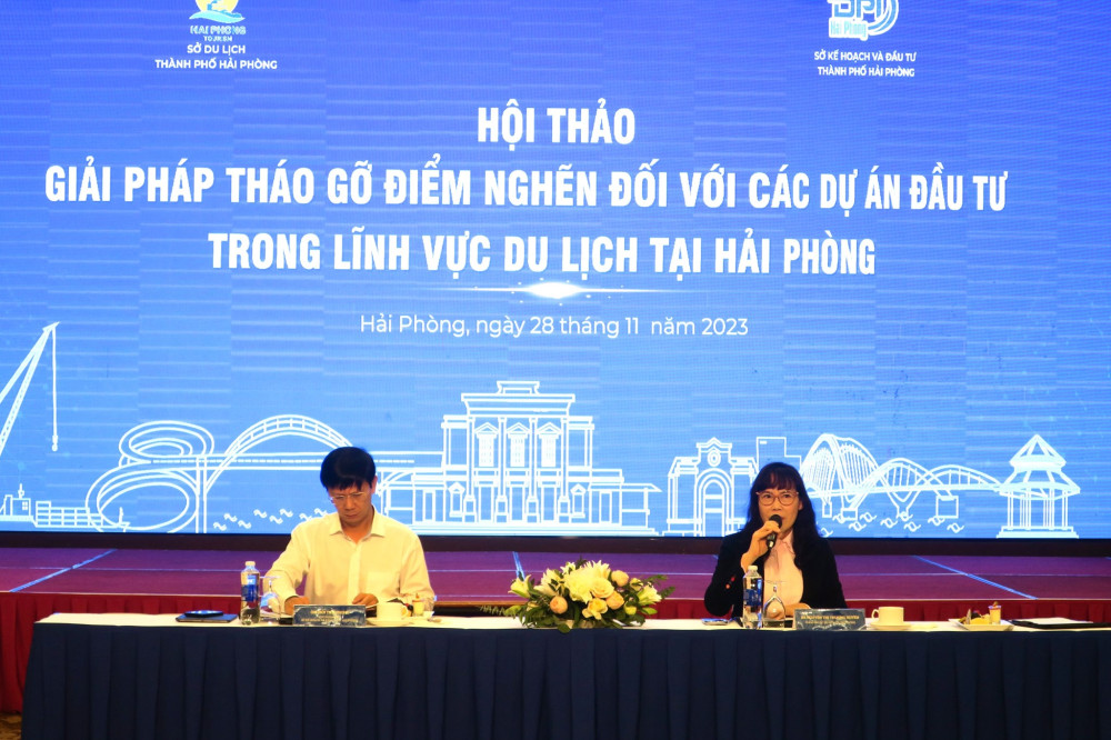 Khai mạc Hội thảo, đồng chí Phạm Thị Thương Huyền, Giám đốc Sở Du lịch Hải Phòng phát biểu: Để du lịch Hải Phòng tiếp tục phát triển và trở thành ngành kinh tế mũi nhọn, rất cần những điều kiện nhằm phát triển mở rộng quy mô và tăng doanh thu du lịch. Từ góc độ đó, cần có cái nhìn mới, đánh giá thấu đáo du lịch Hải Phòng trong hình hình mới, các yếu tố ảnh hưởng đến hoạt động du lịch, nhất là thu hút các dự án đầu tư vào du lịch, đồng thời khơi thông điểm nghẽn, giải quyết tồn tại, hạn chế nêu trên. Đồng chí mong muốn các đại biểu tham dự Hội thảo tập trung nghiên cứu chính sách pháp luật và thực tiễn về thu hút đầu tư du lịch Hải Phòng, chỉ ra những điểm nghẽn và đề xuất các giải pháp nhằm tháo gỡ điểm nghẽn trong đầu tư du lịch tại Hải Phòng.