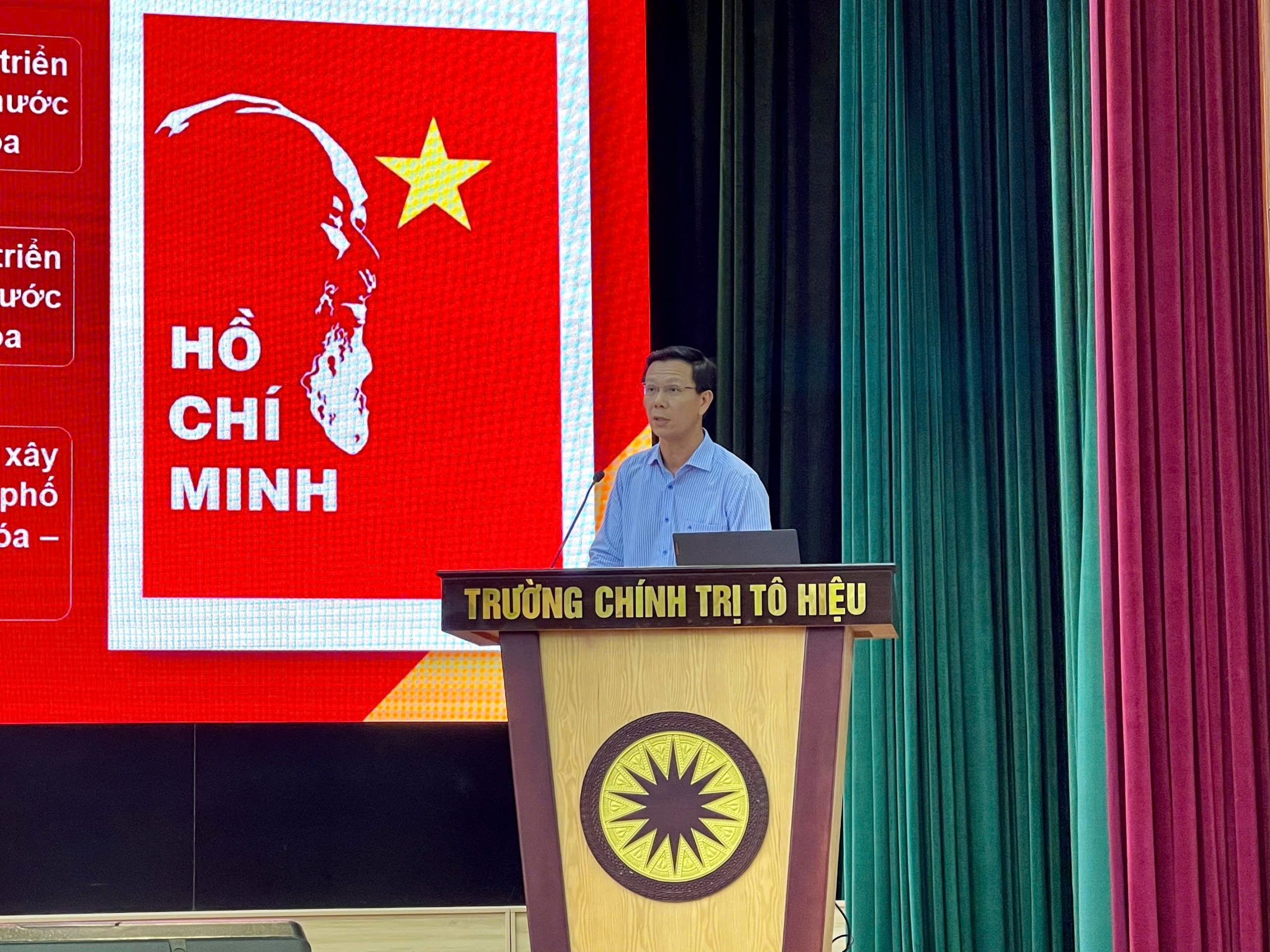 Đồng chí Đào Khánh Hà, Ủy viên Ban Thường vụ Thành ủy, Trưởng ban Ban Tuyên giáo Thành uỷ; PGS. TS Lý Việt Quang, Viện trưởng Viện Hồ Chí Minh và các lãnh tụ của Đảng, Học viện Chính trị quốc gia Hồ Chí Minh; TS. Nguyễn Kim Pha, Bí thư Đảng ủy, Hiệu trưởng Trường Chính trị Tô Hiệu đồng chủ trì Hội thảo. Cùng dự có Phó Chủ tịch UBND thành phố Lê Khắc Nam; các giáo sư, tiến sĩ; đại diện lãnh đạo các Sở, ban, ngành, đơn vị thành phố.
