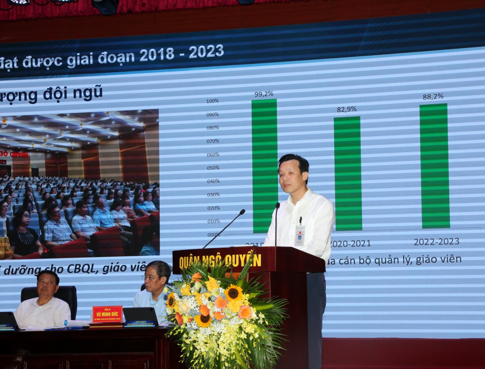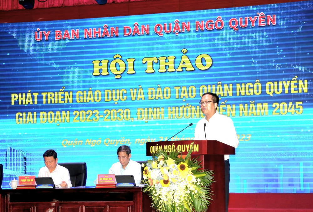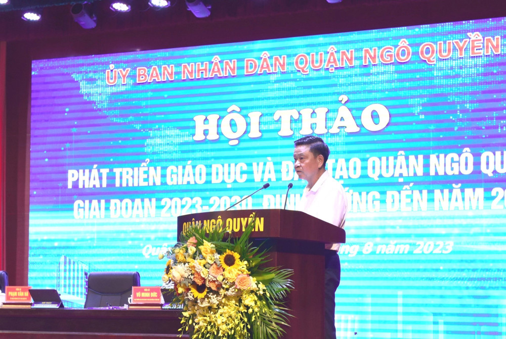 Báo cáo đề dẫn tại Hội thảo, Bí thư Quận ủy Ngô Quyền Phạm Văn Hà cho biết, quận Ngô Quyền được thành lập từ năm 1961, hiện có diện tích trên 11,34 km² với dân số gần 170.000 người, là trung tâm kinh tế, chính trị, văn hóa-xã hội, khoa học-công nghệ, đầu mối giao thông quan trọng của thành phố. Những năm qua, các chủ trương, đường lối, chính sách của Đảng, Nhà nước về giáo dục đào tạo luôn được quận Ngô Quyền cụ thể hóa trong các văn kiện Đại hội Đảng, các chương trình hành động, các kế hoạch phát triển kinh tế-xã hội gắn với trách nhiệm cụ thể của từng tổ chức, cá nhân, nhất là người đứng đầu cấp ủy, chính quyền các cấp.