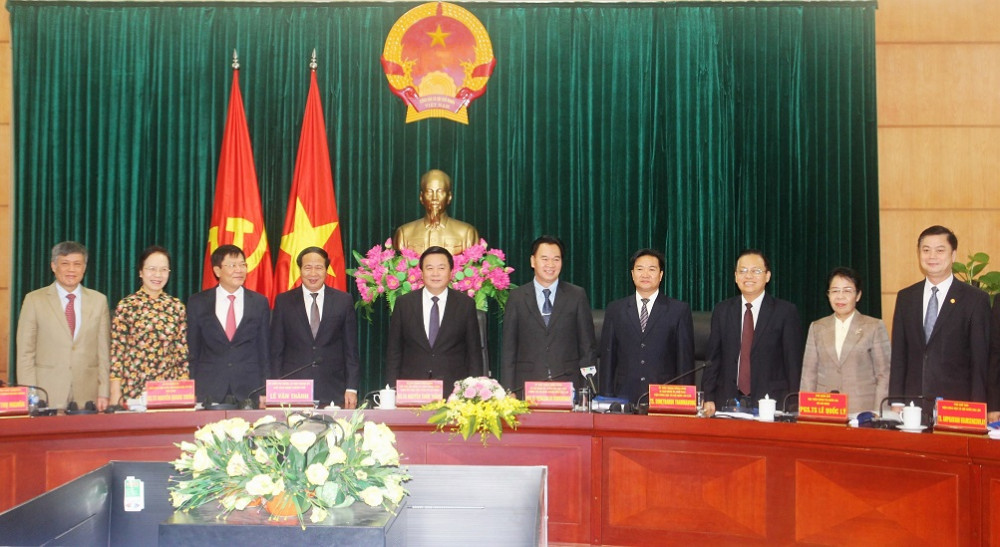 Các đồng chí: GS.TS Nguyễn Xuân Thắng – Bí thư Trung ương Đảng, Chủ tịch Hội đồng lý luận Trung ương, Giám đốc Học viện chính trị quốc gia Hồ Chí Minh; Lê Văn Thành – Ủy viên Trung ương Đảng, Bí thư Thành ủy, Chủ tịch HĐND TP Hải Phòng; GS.TS Nguyễn Quang Thuấn – Bí thư Đảng ủy, Chủ tịch Viện Hàn lâm Khoa học xã hội Việt Nam; PGS.TS Thongsalith Mangnomek – Ủy viên Trung ương Đảng nhân dân cách mạng Lào, Giám đốc Học viện chính trị – hành chính quốc gia Lào; TS Sonethanou Thammavong – Ủy viên Trung ương Đảng nhân dân cách mạng Lào, Chủ tịch Viện khoa học xã hội quốc gia Lào, đồng chủ trì hội thảo.