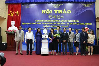 Sáng 20-6, Bệnh viện (BV) Trẻ em Hải Phòng phối hợp với BV Trẻ em – Đại học Quốc gia Seoul, Công ty FutureRobot Hàn Quốc tổ chức hội thảo thử nghiệm lâm sàng mô phỏng trên Robot điểm chăm sóc buồng bệnh (Robot POC). Tham dự Hội thảo có TS.BSCKII Phạm Thu Xanh, Giám đốc Sở Y tế, đại diện BV Trẻ em – Đại học Quốc gia Seoul, Công ty FutureRobot Hàn Quốc và các sở, ban, ngành có liên quan.