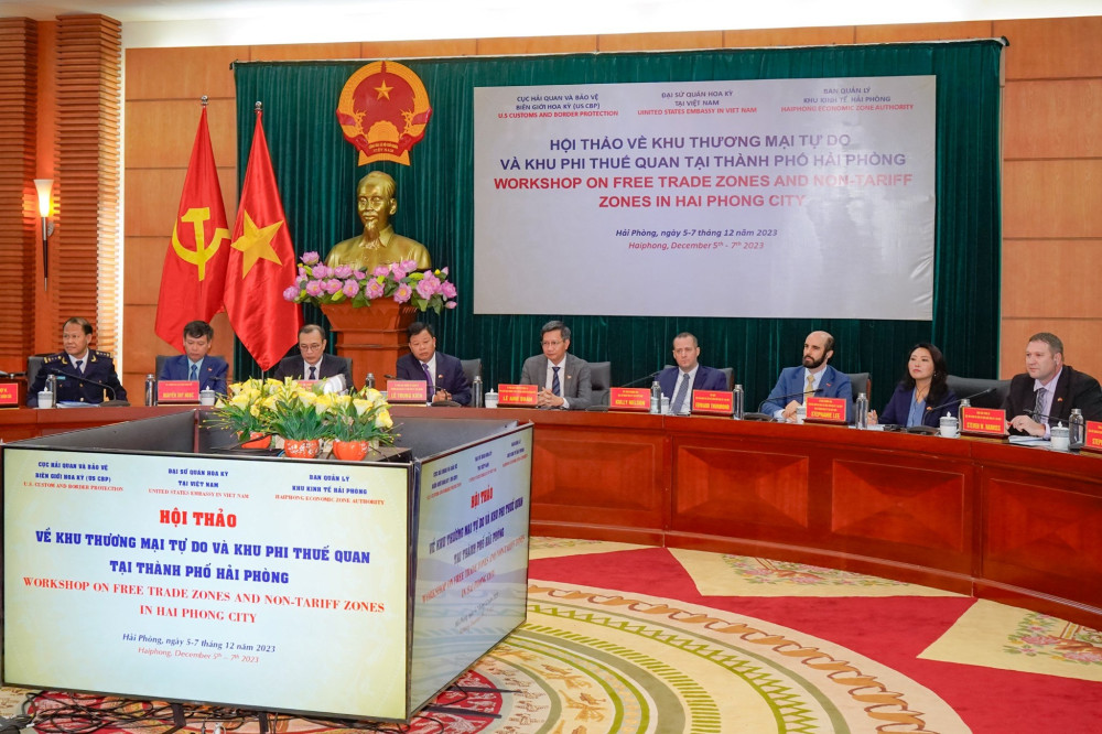 Sáng 05/12, tại Trung tâm hội nghị thành phố, Ban Quản lý Khu kinh tế Hải Phòng phối hợp với Cơ quan Hải quan và Bảo vệ Biên giới Hoa Kỳ (US CBP) tổ chức Hội thảo “Xây dựng năng lực trong việc thành lập Khu thương mại tự do và khu phi thuế quan tại thành phố Hải Phòng” với mục tiêu đẩy nhanh tiến độ thành lập Khu kinh tế phía Nam Hải Phòng trong đó có thành lập Khu thương mại tự do và triển khai, hoạch định cơ chế chính sách tại Khu phi thuế quan Xuân Cầu.