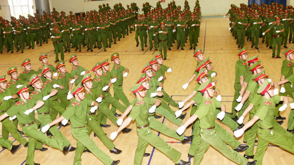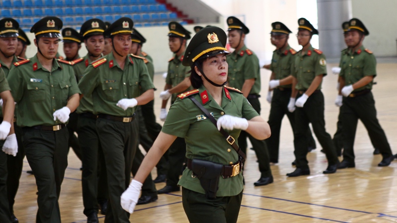 Phần thi thực hành nghi lễ CAND. Ảnh Phan Tuấn