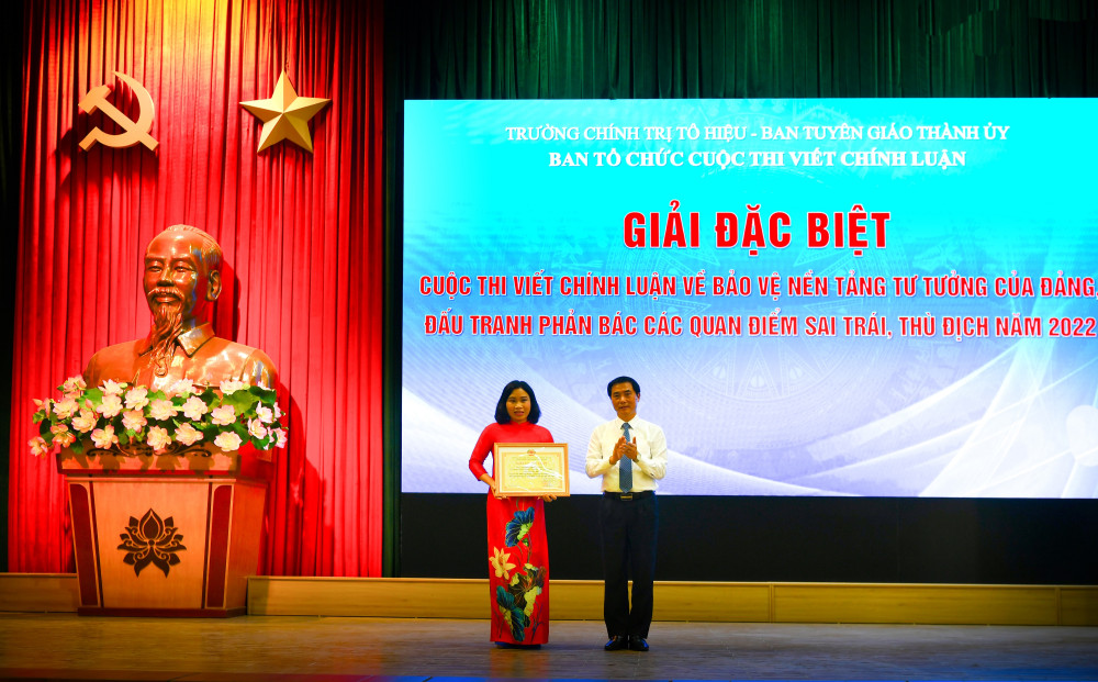 Sáng 23/8, Trường Chính trị Tô Hiệu và Ban Tuyên giáo Thành ủy phối hợp tổ chức Hội nghị Tổng kết, trao giải Cuộc thi viết chính luận về bảo vệ nền tảng tư tưởng của Đảng, đấu tranh phản bác các quan điểm sai trái, thù địch năm 2022.