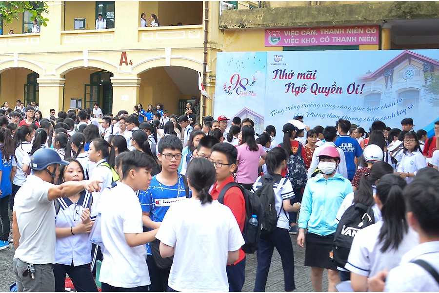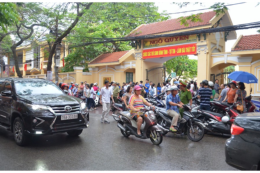 Từ sớm, rất đông các thi sinh tập trung tại hội đồng thi Trường THPT Ngô Quyền
