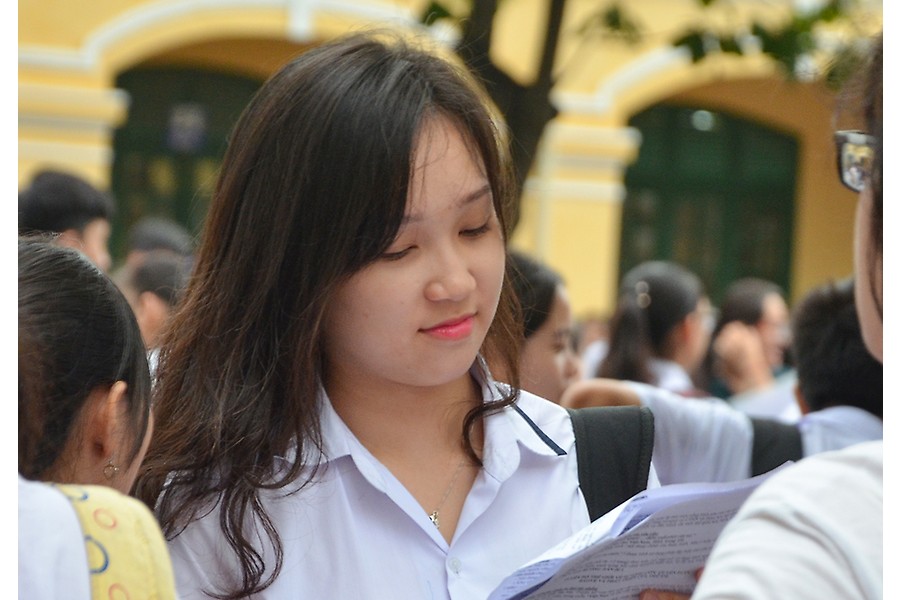 Thí sinh tranh thủ ôn lại kiến thức đã học trước khi bước vào phòng thi