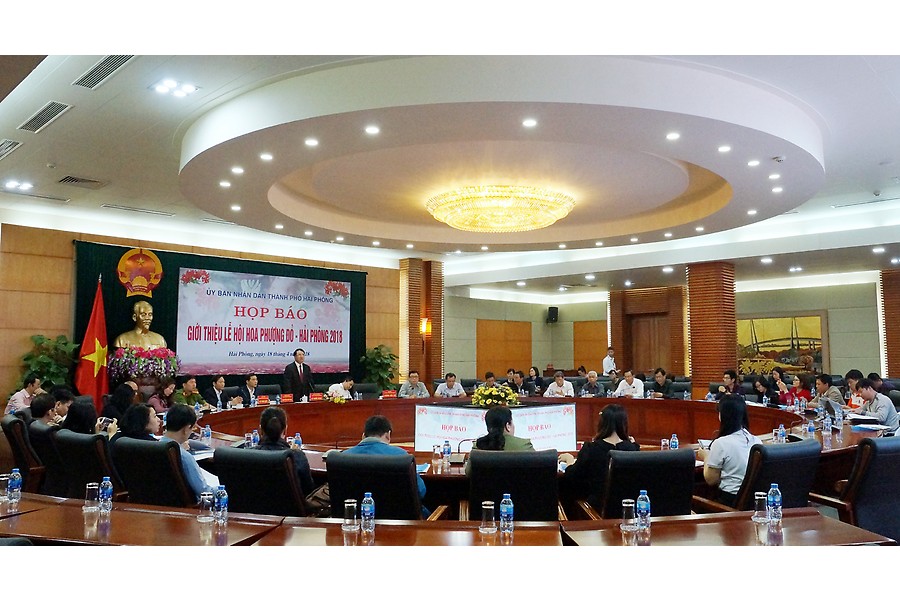 Sáng 18-4, UBND thành phố tổ chức họp báo giới thiệu Lễ hội Hoa Phượng Đỏ- Hải Phòng 2018. Đồng chí Lê Khắc Nam, Phó chủ tịch UBND thành phố chủ trì cuộc họp.