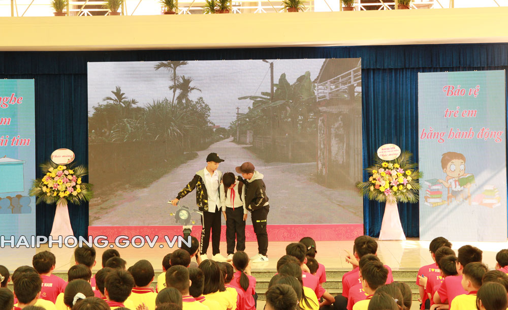 Đội truyền thông 3 với nội dung: “Sự vào cuộc của gia đình, nhà trường và toàn xã hội” với các vấn đề chăm sóc, giáo dục, bảo vệ trẻ em, cùng thông điệp “Lắng nghe trẻ em bằng trái tim-Bảo vệ trẻ em bằng hành động” thông qua tiểu phẩm “Việc này của ai”.