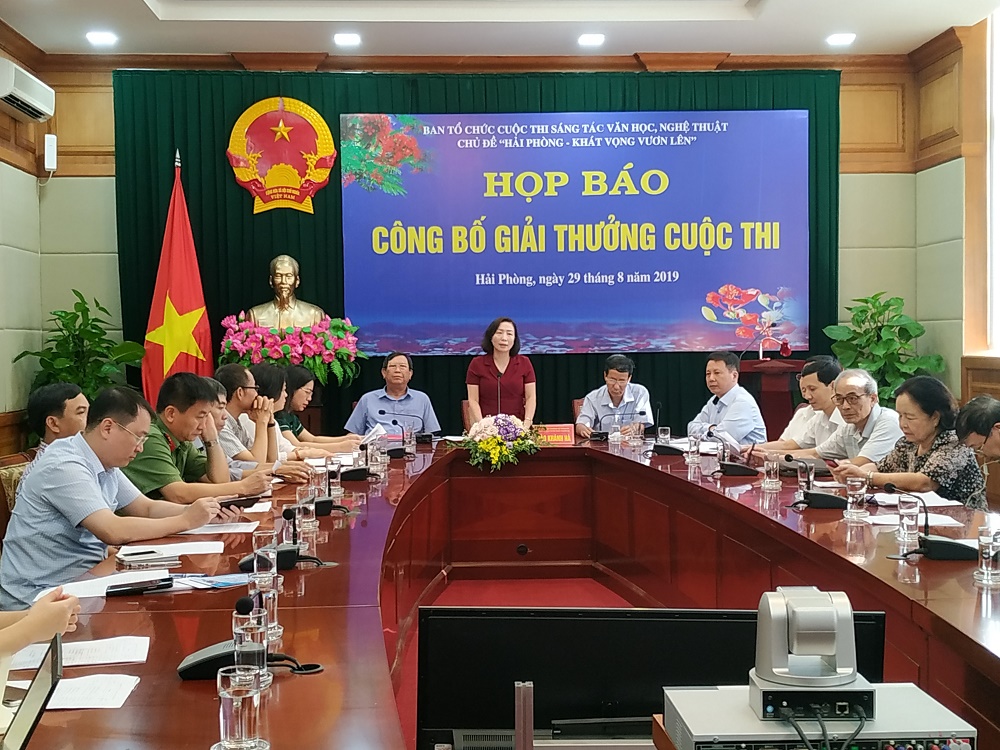 Sáng 29/8, Ban Tổ chức Cuộc thi sáng tác Văn học, Nghệ thuật chủ đề “Hải Phòng – Khát vọng vươn lên” tổ chức Họp báo công bố kết quả Cuộc thi. Đồng chí Đào Khánh Hà, Trưởng ban Ban Tuyên giáo Thành ủy, Trưởng ban Tổ chức Cuộc thi chủ trì cuộc họp.
