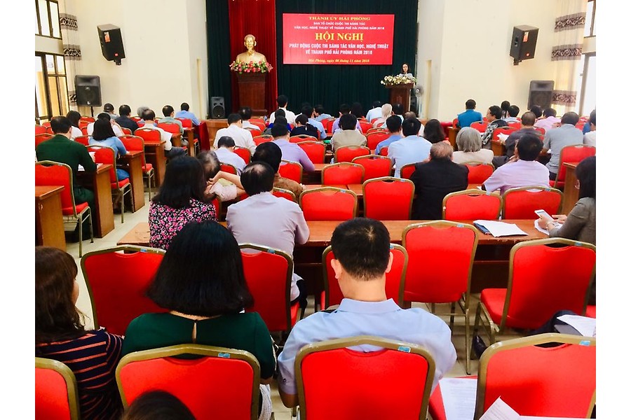 Cuộc thi sáng tác Văn học Nghệ thuật về thành phố Hải Phòng năm 2018, với chủ đề “Hải Phòng – Khát vọng vươn lên” chính thức được phát động chiều 8-11 tại trụ sở các ban xây dựng Đảng. Đông đảo văn nghệ sĩ Hải Phòng đang sinh hoạt tại các hội chuyên ngành văn học nghệ thuật thành phố dự phát động.