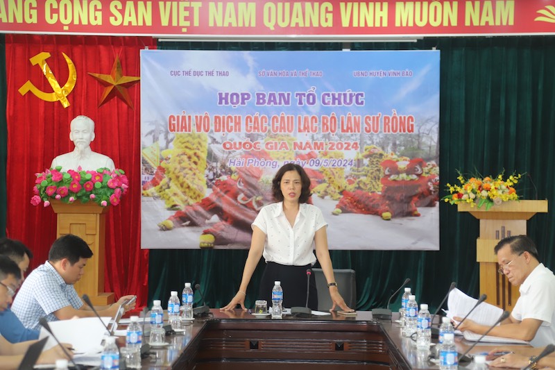 Phát biểu tại cuộc họp, đồng chí Phạm Thị Tô Trang, Phó Giám đốc Sở Văn hóa và Thể thao thành phố, Trưởng Ban Tổ chức Giải nhấn mạnh: Giải vô địch các câu lạc bộ lân sư rồng quốc gia năm 2024 tại thành phố Hải Phòng là giải đấu nằm trong chuỗi các hoạt động tiêu biểu chào mừng kỷ niệm 69 năm Ngày Giải phóng Hải Phòng (13-5-1955*13-5-2024), hưởng ứng Lễ hội Hoa Phượng Đỏ- Hải Phòng 2024.