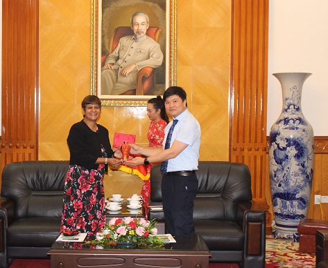 Sáng 24/8, tại trụ sở UBND thành phố, Phó Chủ tịch UBND thành phố Hoàng Minh Cường tiếp và làm việc với bà Sunita Rajan, Giám đốc điều hành, Kênh Truyền hình Bloomberg khu vực Châu Á Thái Bình Dương nhằm tìm hiểu cơ hội hợp tác truyền thông, thu hút đầu tư quốc tế vào thành phố.