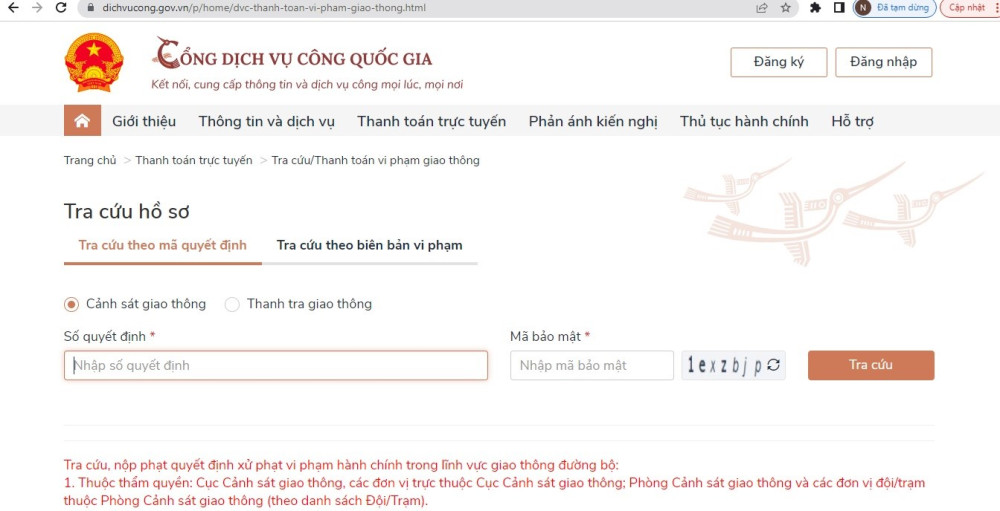 Như vậy, người vi phạm chỉ cần đăng nhập CDVCQG theo địa chỉ: dichvucong.gov.vn
