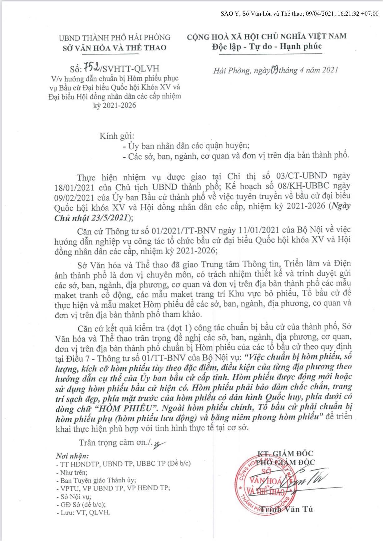 Sở Văn hóa và Thể thao vừa có Công văn số 752/SVHTT-QLVH, ngày 09/4/2021 về việc hướng dẫn chuẩn bị Hòm phiếu phục vụ bầu cử Đại biểu Quốc hội khóa XV và Đại biểu Hội đồng nhân dân các cấp nhiệm kỳ 2021-2026.